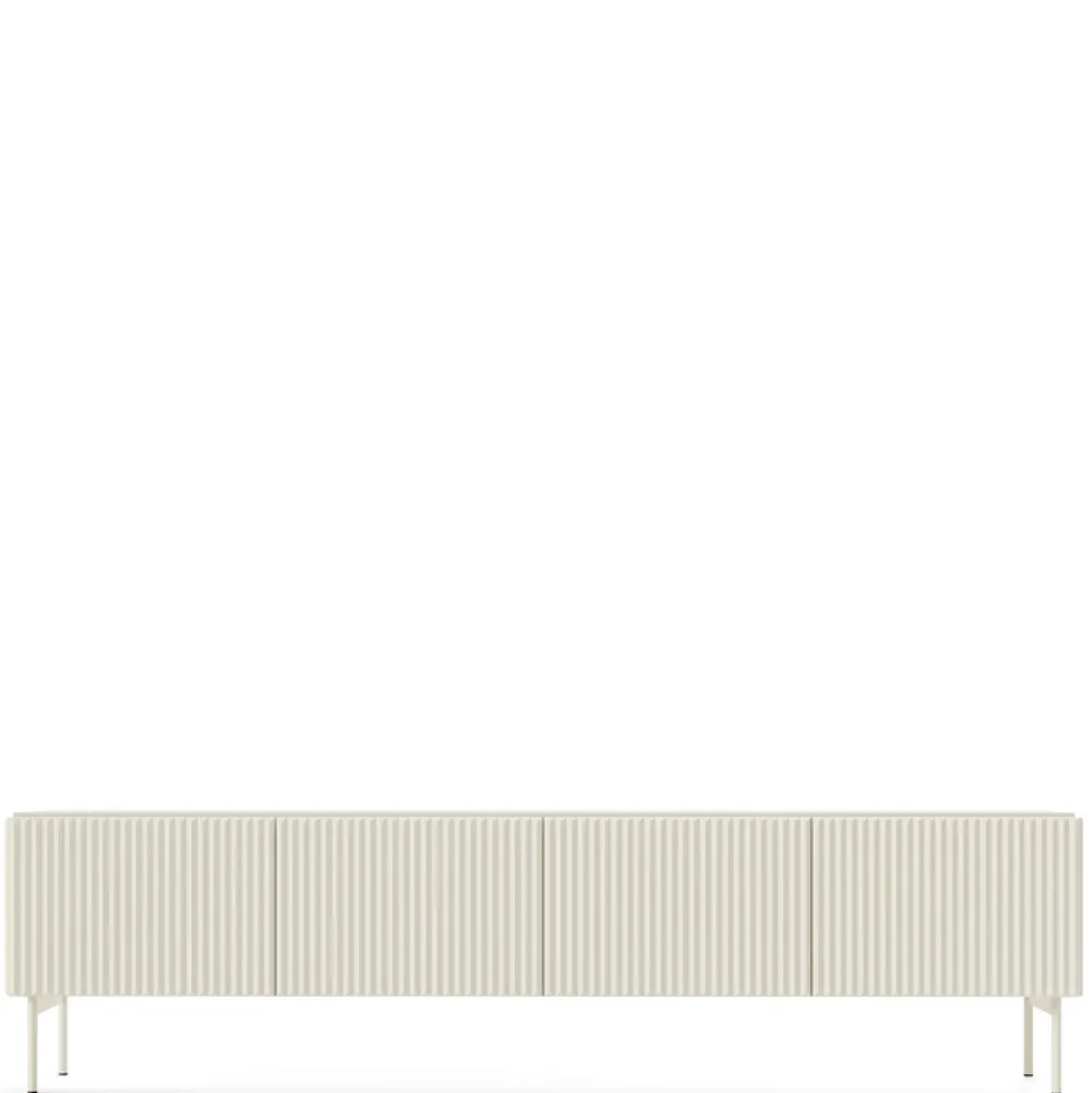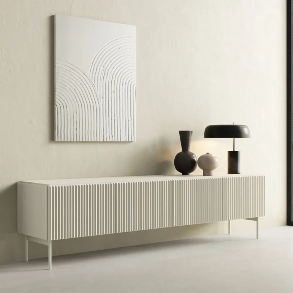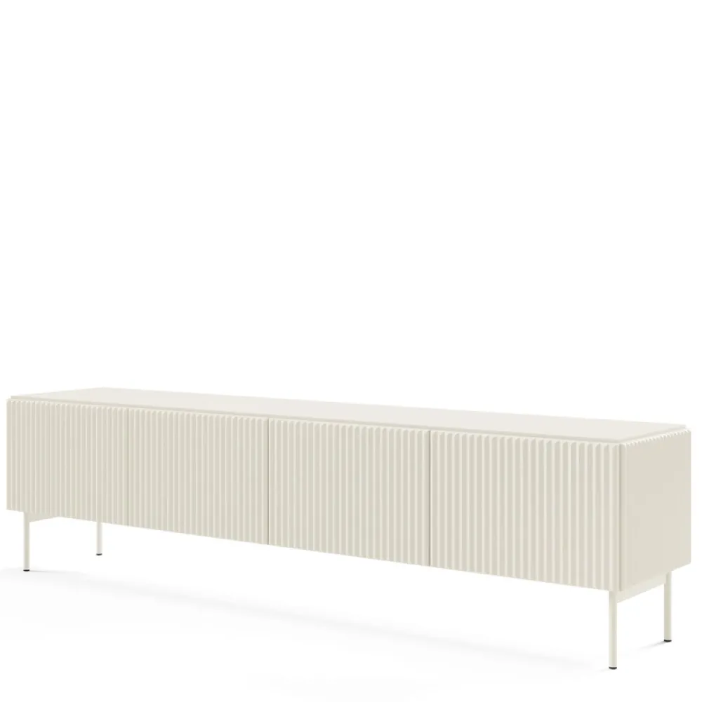 Szafka RTV ryflowana w kolorze kaszmir – subtelna elegancja i praktyczność w jednym