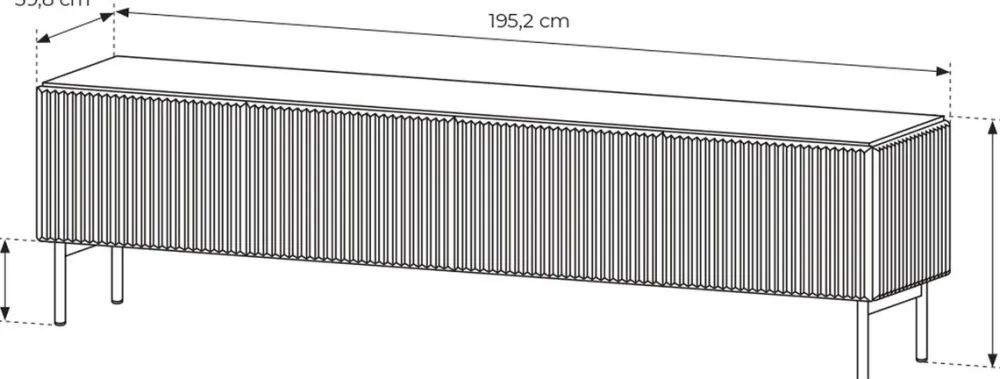 - Wymiary: szerokość 195,2 cm, głębokość 39,8 cm, wysokość 51,2 cm (w tym nogi 18 cm)