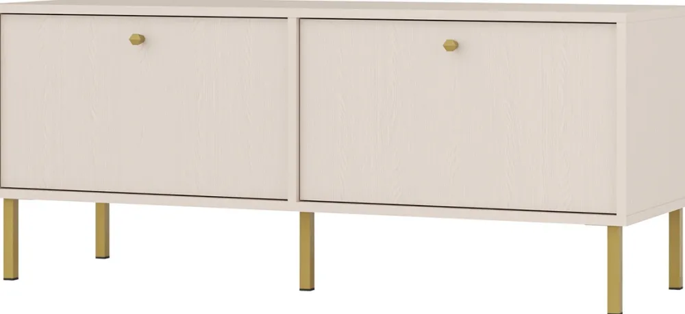 - Mała szafka RTV 120 cm TOKEN posiada nóżki o wysokości 15 cm, które pozwalają na swobodną pracę odkurzaczy samojezdnych. Szafka posiada parę drzwi osadzonych na zawiasach puszkowych oraz podporowych. Uchwyty i nóżki wykonano z metalu.