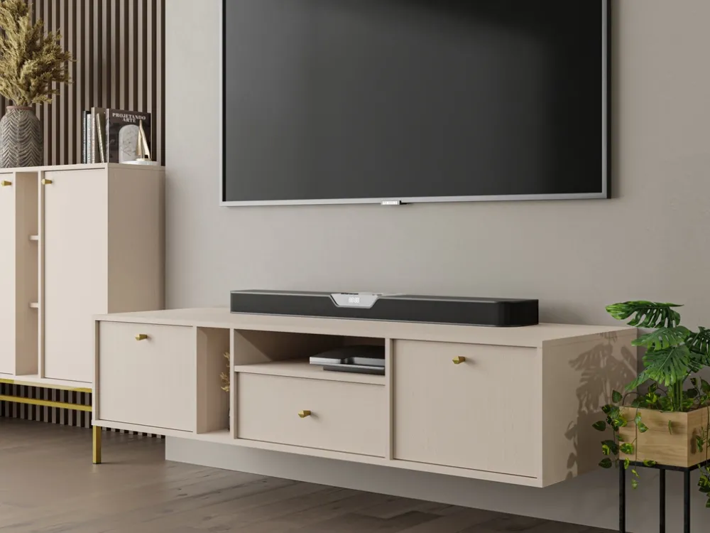 Wisząca szafka RTV 180 cm to nie tylko praktyczne rozwiązanie do przechowywania, ale również stylowy element, który doda uroku każdemu wnętrzu. Sprawdź naszą ofertę i przekonaj się, jak nasza szafka RTV może odmienić Twój salon!