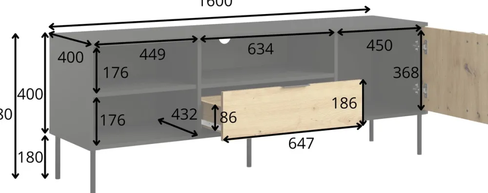 Zastanawiasz się, czy szafka RTV 160 cm będzie pasować do małego salonu? Dzięki lekkiej konstrukcji na metalowych nogach mebel nie przytłacza przestrzeni, a jego funkcjonalne wnętrze ułatwia organizację codzienności. To doskonały wybór dla miłośników minimalizmu i stylu industrialnego.