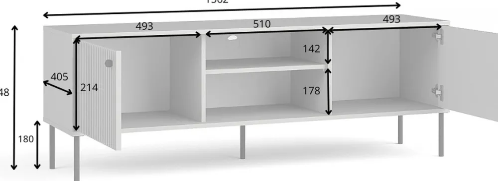 - Wymiary: szer. 156,2 cm / wys. 54,8 cm / gł. 40,5 cm