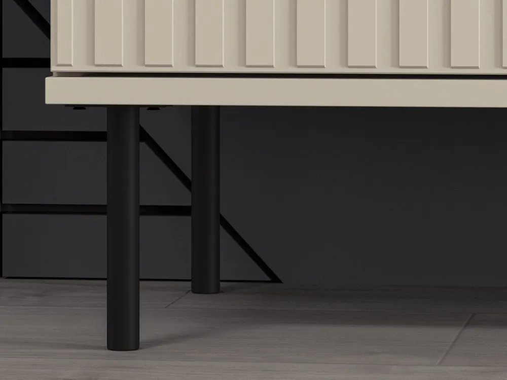 - Nóżki wykonane z metalu w kolorze czarnym umożliwiają wygodne odkurzanie pod szafką.