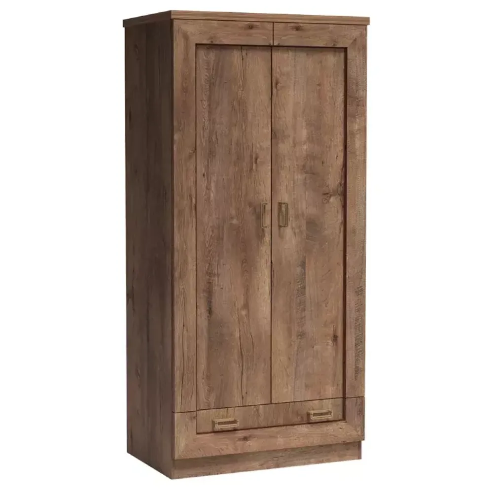 - Szafa TAVIER to bardzo elegancka propozycja, która dzięki swojej stylistyce doskonale zdobi pomieszczenie. Szafa została wyposażona w drążek na wieszaki oraz półkę, która znajduje się nad nim. Dodatkowo szafa posiada uchwyty w formie postarzanego złota.