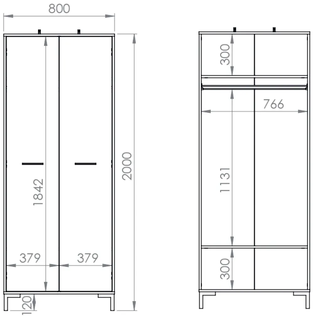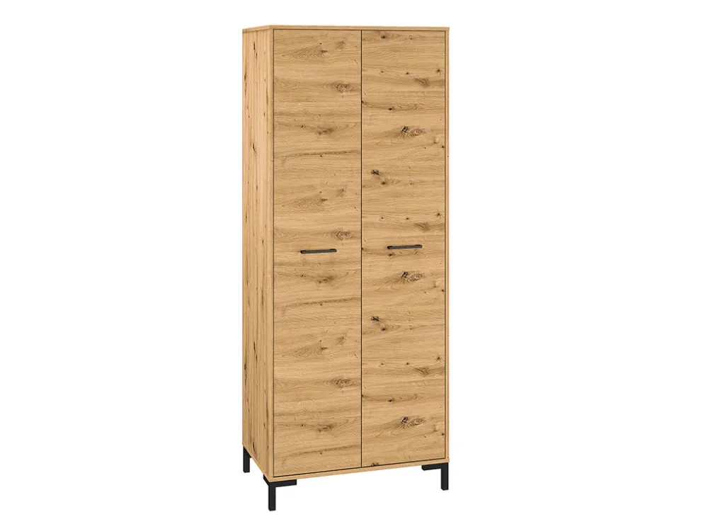 - Odkryj dwudrzwiową szafę NEVIO o szerokości 80 cm. Wykonana została w całości z płyty laminowanej, a jej krawędzie zabezpieczono dodatkowo okleiną ABS. Wewnątrz szafy znajdziemy dwie półki oraz drążek. Nogi i uchwyty zostały wykonane z tworzywa sztucznego