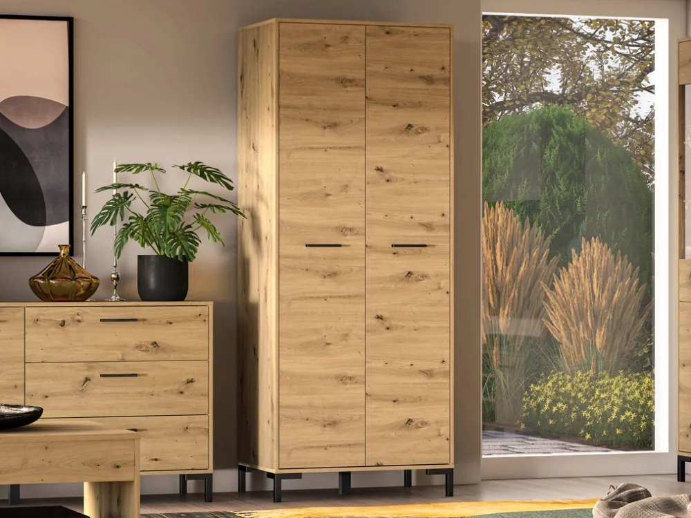 Ta dwudrzwiowa szafa to synonim praktyczności i stylu. Niezależnie od tego, czy potrzebujesz dodatkowego miejsca na ubrania w sypialni, czy szukasz eleganckiego mebla do przedpokoju, nasza szafa spełni Twoje oczekiwania, oferując przestronność i wytrzymałość w jednym.
