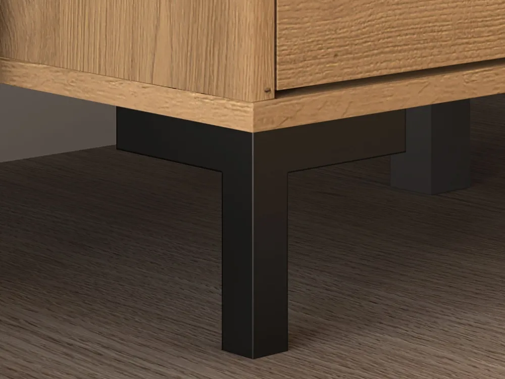 - Nóżki szafy wykonane z tworzywa sztucznego w kolorze czarnym umożliwiają wygodne odkurzanie pod szafą.