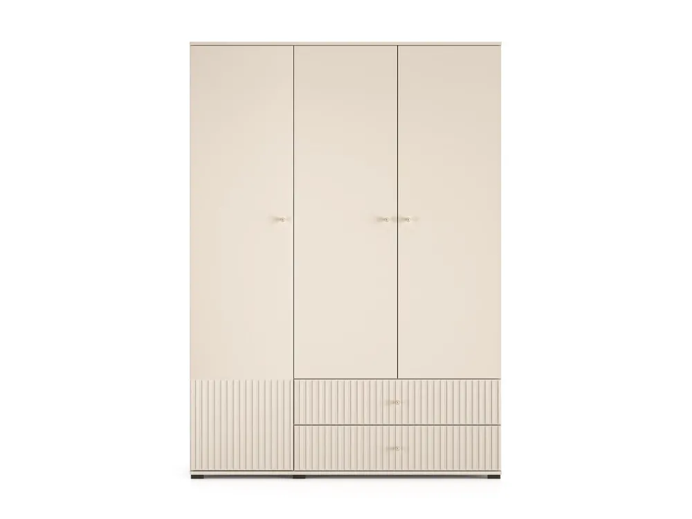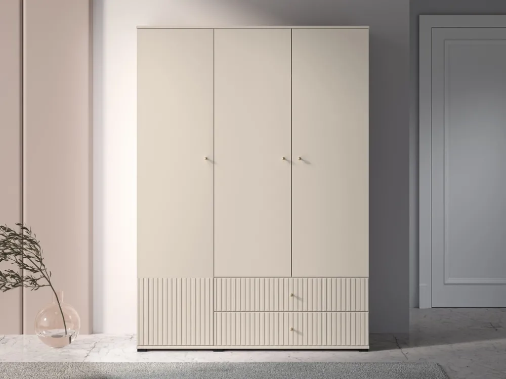 Szafa SOPHIE o szerokości 150 cm to doskonałe rozwiązanie do nowoczesnych wnętrz, w których liczy się nie tylko funkcjonalność, ale i styl. Elegancki odcień cashmere w połączeniu z ozdobnymi lamelami tworzy harmonijną całość, która doda klasy zarówno sypialni, jak i przedpokojowi. Wnętrze szafy zapewnia idealną przestrzeń do przechowywania ubrań i dodatków, ułatwiając codzienną organizację.