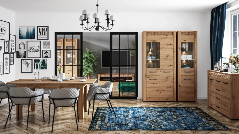 Wybierając tę szafę, inwestujesz w praktyczny i estetyczny mebel, który stanie się ozdobą Twojego salonu, jednocześnie spełniając wszystkie Twoje oczekiwania pod względem funkcjonalności.