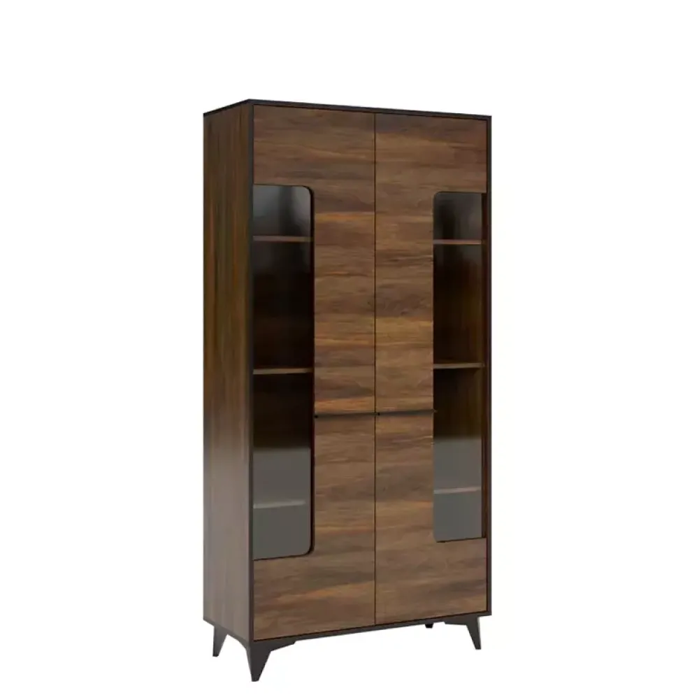 - Witryna FERANO została wyposażona w trzy półki po lewej stronie oraz prawej stronie, które będą doskonałym miejscem do umieszczenia pamiątek oraz drobnych dekorów. Natomiast wysokie nóżki ułatwią sprzątanie oraz umożliwią pracę odkurzaczy samojezdnych.