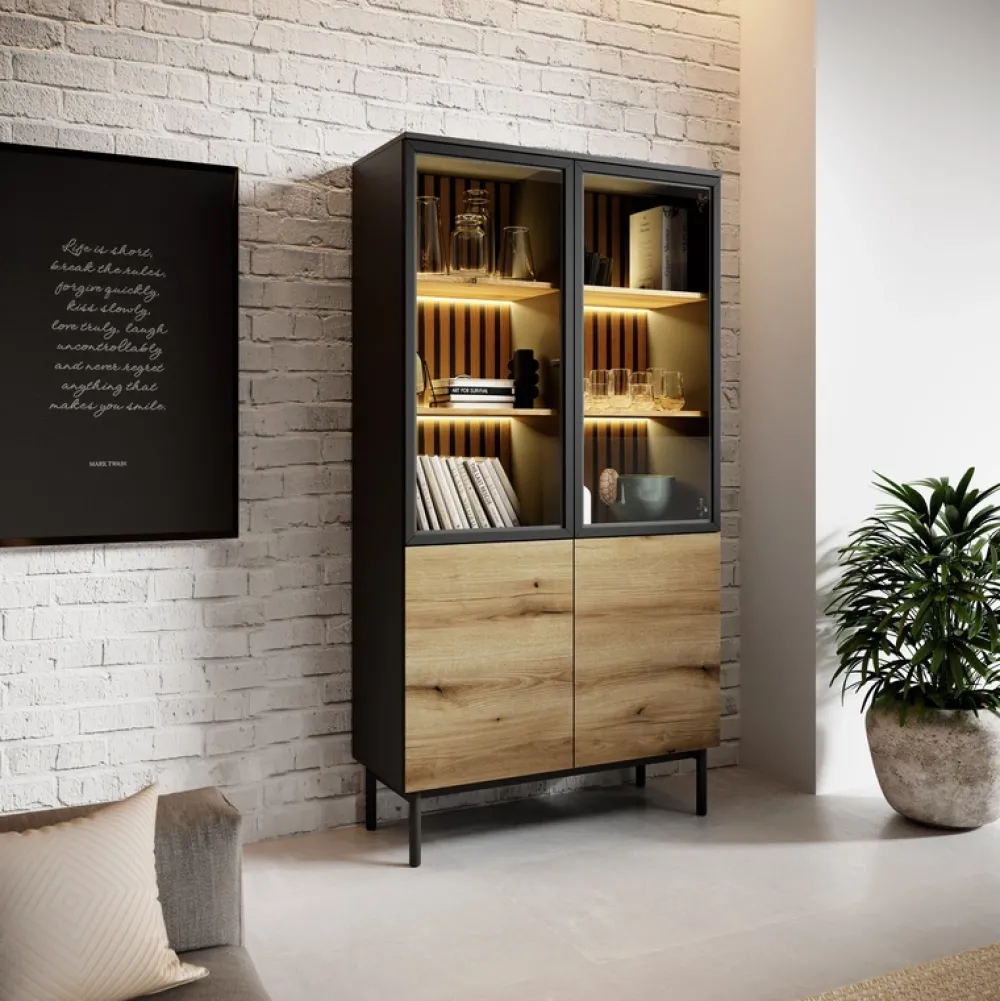 Witryna do salonu LARINO to idealne połączenie loftowej elegancji i funkcjonalności, które sprawdzi się w każdym wnętrzu. Dzięki starannie dobranym materiałom i wyjątkowemu designowi witryna na książki LARINO stanie się ozdobą salonu, oferując miejsce na książki, alkohol czy dekoracje.