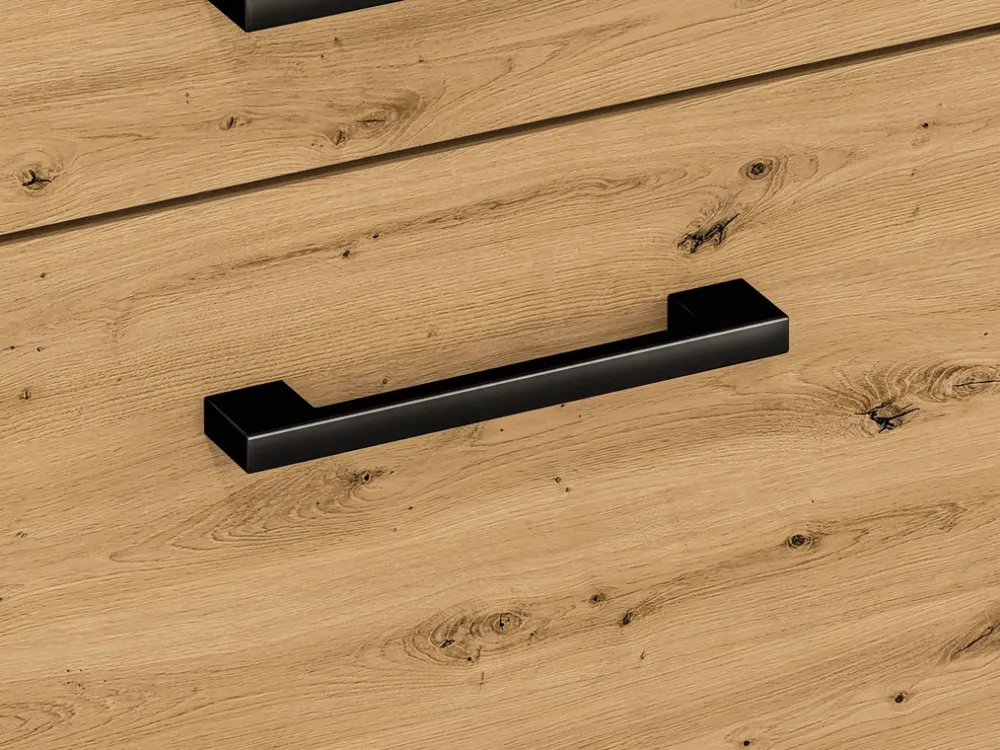 - Nóżki szafy wykonane z tworzywa sztucznego w kolorze czarnym umożliwiają wygodne odkurzanie pod szafą.