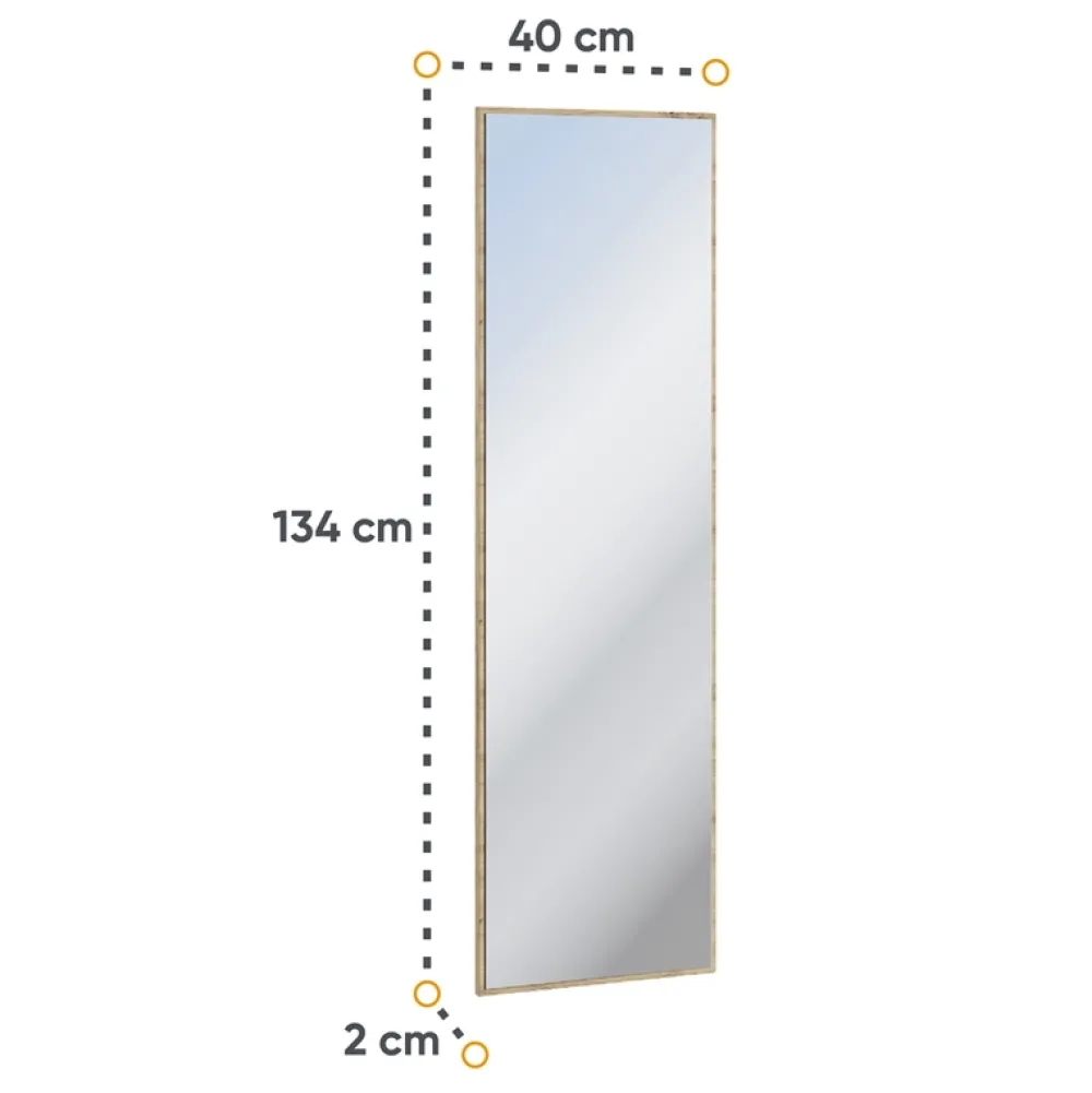 Jego kompaktowe rozmiary oraz stonowana stylistyka sprawiają, że idealnie wpasuje się w każdy przedpokój, niezależnie od wielkości stanowiąc doskonały element dekoracyjny oraz praktyczny, pozwalając sprawdzić nasz wygląd przed wyjściem z domu. Lustro posiada subtelna ramkę wykonaną w kolorze dąb artisan.
