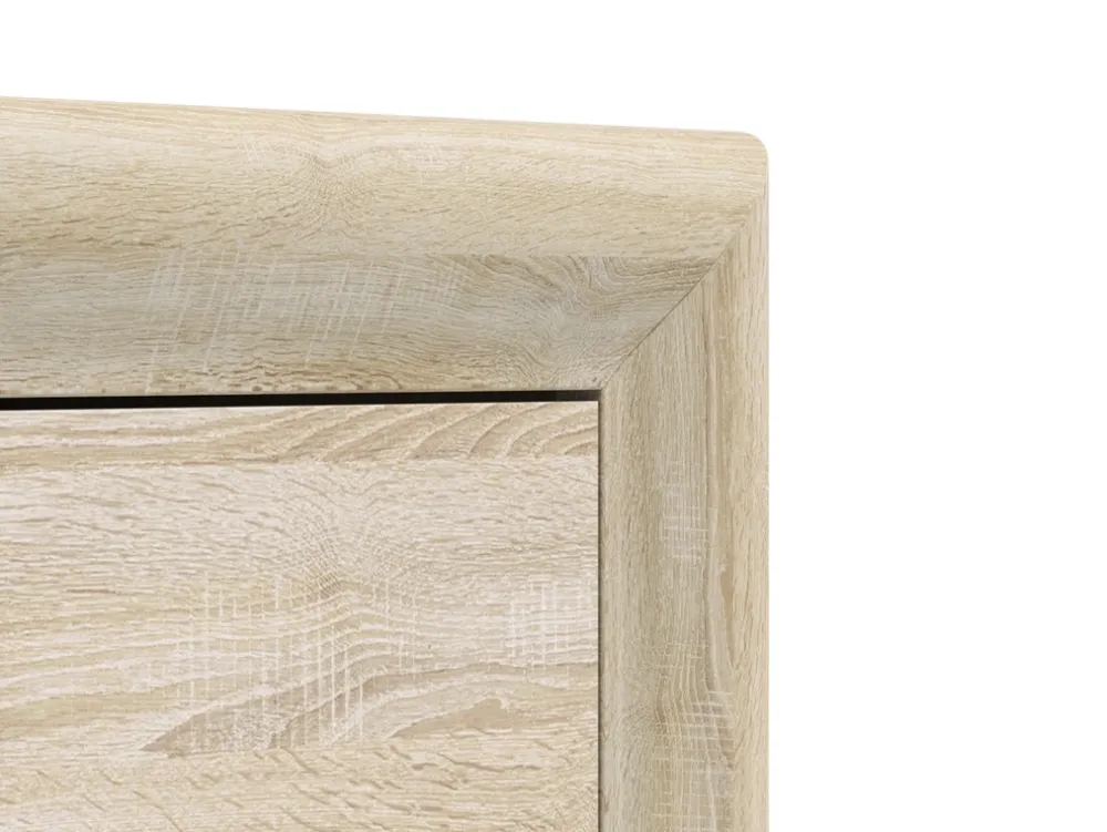 Kolor dąb sonoma to wybór, który wnosi do wnętrza naturalny urok i ciepło. Jego neutralny, a jednocześnie wyrazisty odcień doskonale komponuje się z różnymi stylami aranżacji, od nowoczesnych po bardziej tradycyjne. Szafa została wykonana z wysokiej jakości materiałów, co zapewnia jej trwałość i estetyczny wygląd przez wiele lat.