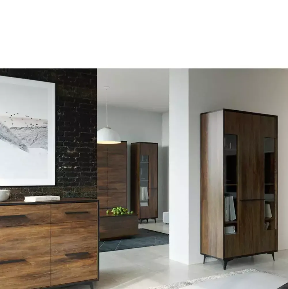 - Komoda została wykonana z solidnej płyty laminowanej o grubości 15 mm odpornej na uszkodzenia mechaniczne.