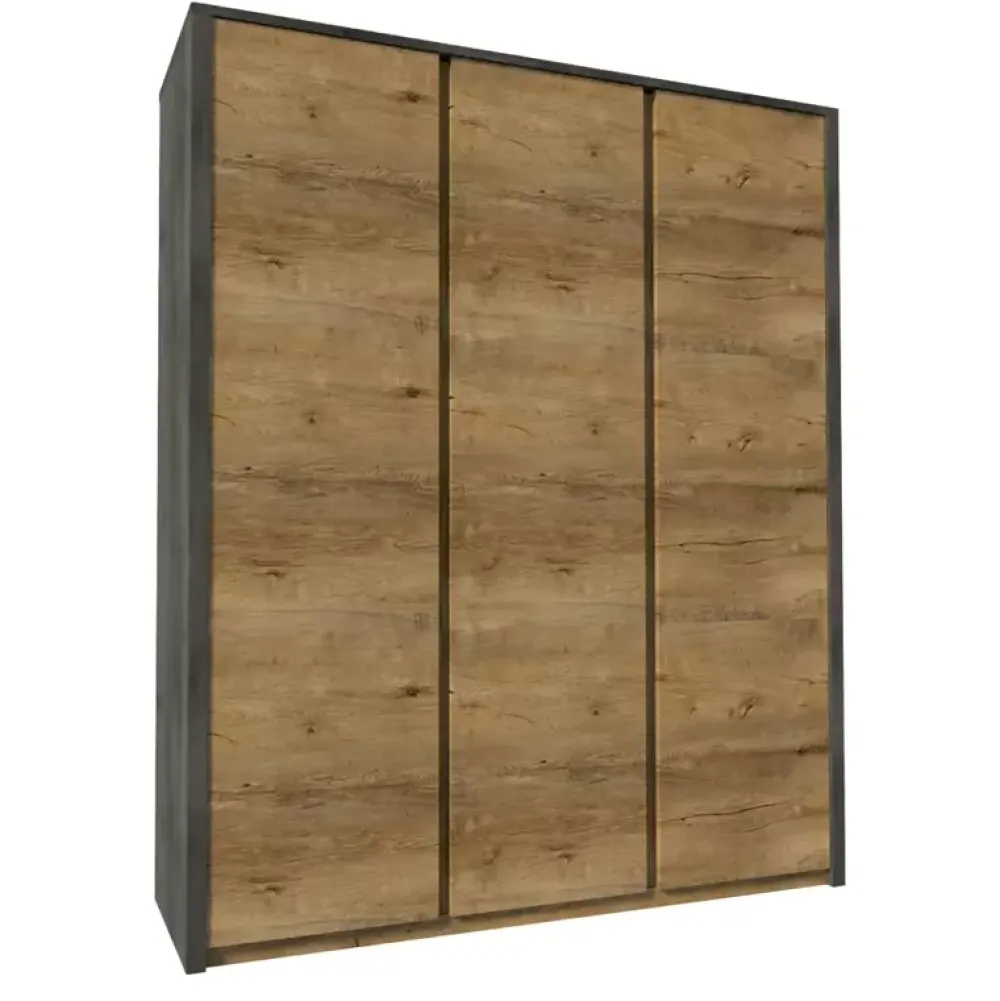 Zestaw mebli MERIZO to propozycja na wyposażenie sypialni w nowoczesnym oraz niepowtarzalnym stylu. W zestawie znajduje się pojemna szafa trzydrzwiowa, która została wyposażona w drążek nad którym znajduje się półka za lewymi oraz prawymi drzwiami oraz cztery półki znajdujące się za drzwiami w centralnej części szafy. Natomiast samo łóżko zostało wyposażone w zagłówek oraz stelaż posiadający miejsce na materac o powierzchni spania 160×200 cm. Dodatkowo w zestawie swoje miejsce znalazła wysoka komoda wyposażona w trzy pojemne szuflady oraz wnękę u góry na rozmaite akcesoria oraz drobne dekory.