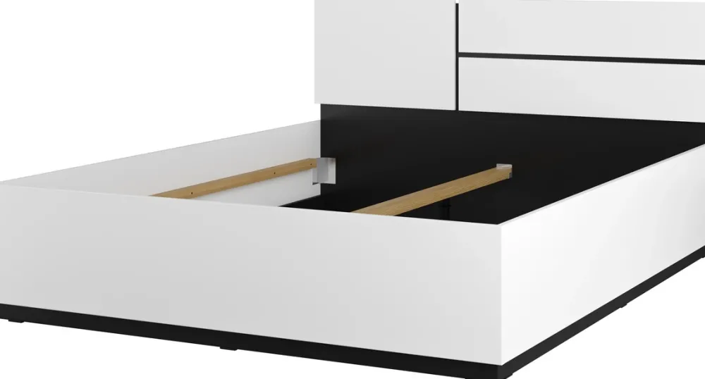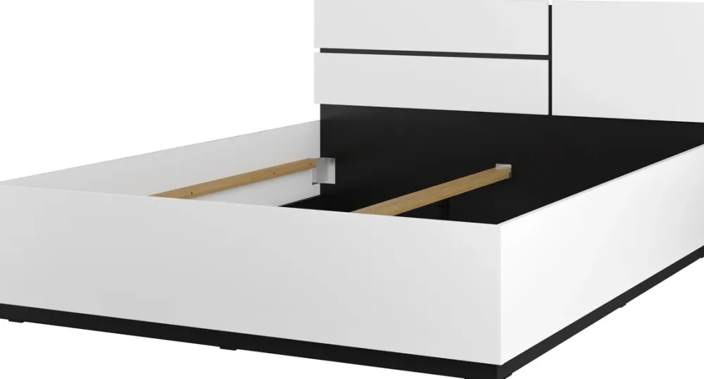 - Łóżko nie posiada w zestawie stelaża ani materaca, dzięki czemu można dopasować mebel do własnych potrzeb i preferencji. Dedykowany stelaż i materac znajduje się w sekcji Kup Razem.