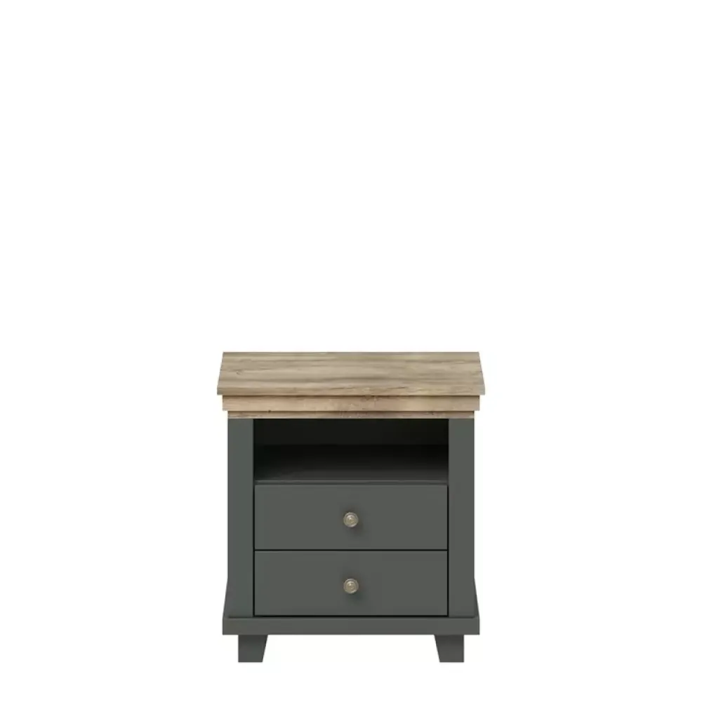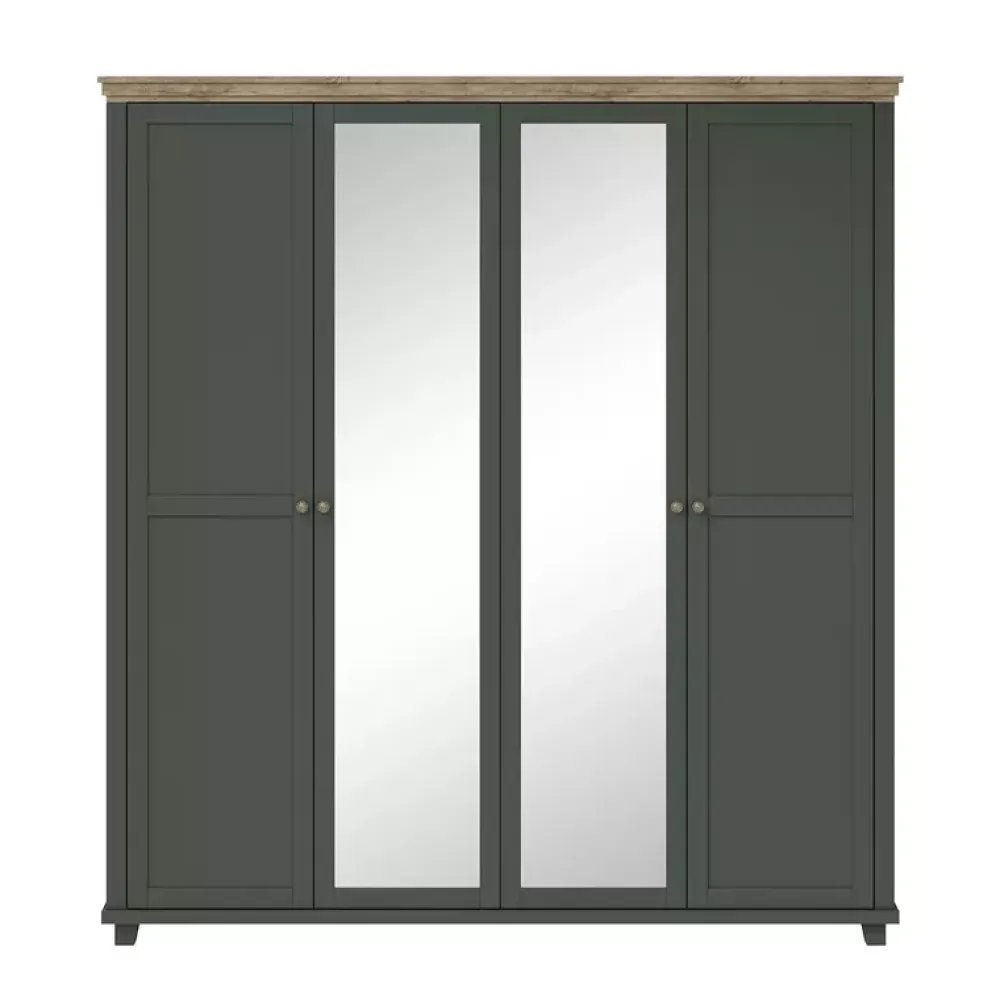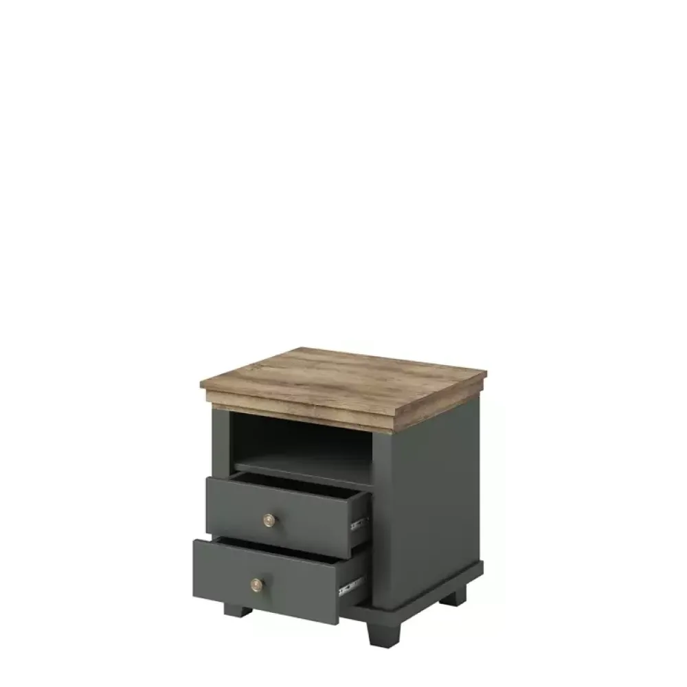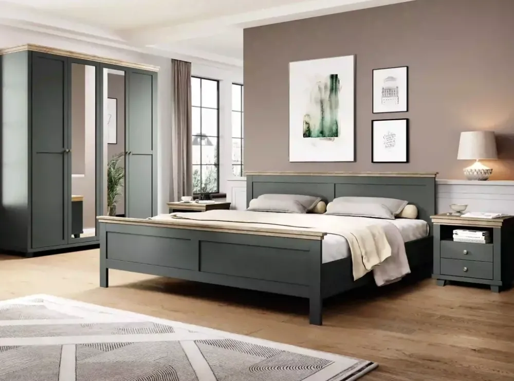 Sypialnia IVORIA to kolekcja mebli o klasycznej stylistyce. Dostępne w kolorze butelkowej zieleni w połączeniu z dębem Lefkas, idealnie wpasowuje się w dzisiejsze trendy. Dla zwolenników bardziej prowansalskich wystrojów meble dostępne są w kolorze jesion Abisko, który jest jasnym odcieniem o charakterystycznym szarym usłojeniu. Dostępne w kolekcji bryły takie jak łoże, stoliki nocne, komody i pojemne szafy pozwolą zaaranżować wymarzoną sypialnię o wyjątkowym stylu.