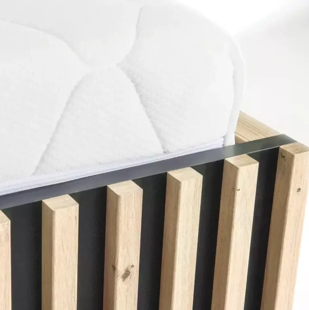 - Obrzeża łóżka zabezpieczono przed uszkodzeniami okleiną ABS.
