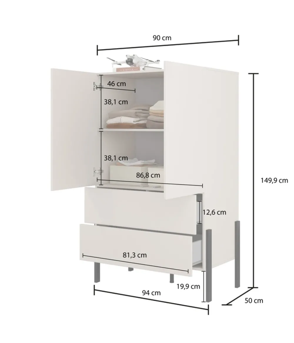 Zastanawiasz się, czy komoda z szufladami i półkami zmieści się w Twoim wnętrzu? Dzięki przemyślanym wymiarom i lekkiej formie model ten świetnie odnajdzie się nawet w mniejszych pomieszczeniach.