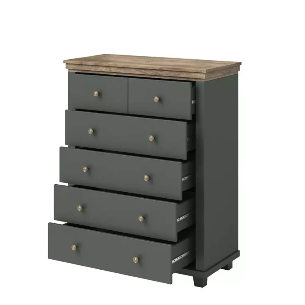 - Komoda o szerokości 90 cm z sześcioma szufladami.