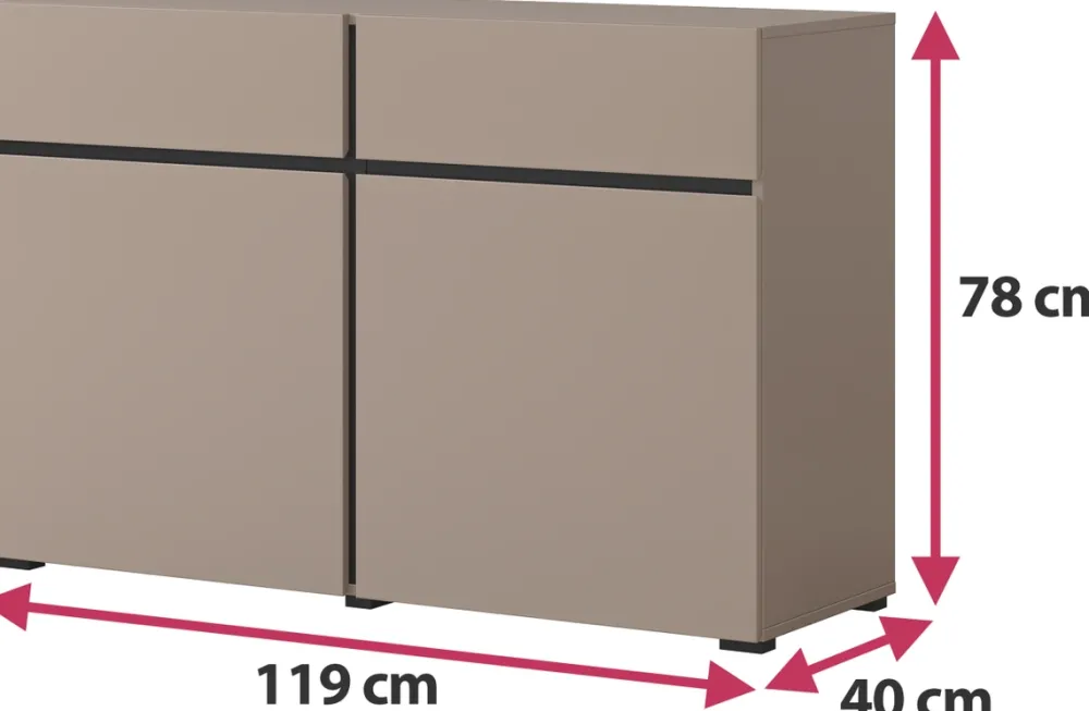Przedstawiamy wyjątkową komodę z szufladami CROSS, która stanie się ozdobą każdego nowoczesnego salonu. O szerokości 119 cm, ten elegancki mebel nie tylko przyciąga wzrok, ale również zachwyca swoją funkcjonalnością i wysoką jakością wykonania.