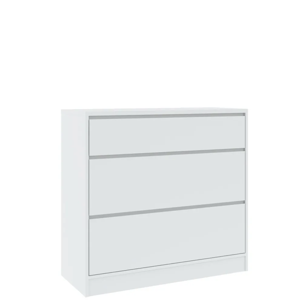 - Komoda BALVIO 98 cm w białym, matowym wykończeniu to minimalistyczny mebel do salonu, sypialni lub przedpokoju. Bezuchwytowy front, kompaktowy rozmiar i trwałe materiały łączą nowoczesną elegancję z codzienną funkcjonalnością.