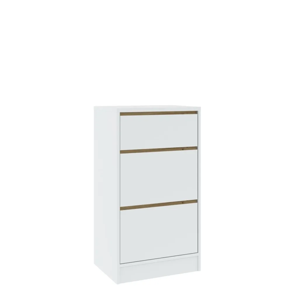 Wąska komoda BALVIO to doskonały wybór do salonu, w którym liczy się każdy centymetr przestrzeni. Jej minimalistyczny design w białym dekorze wnosi do wnętrza elegancję, a kompaktowa szerokość 50 cm sprawia, że zmieści się nawet w wąskich wnękach czy przy wejściu do pokoju. Idealna do przechowywania dokumentów, drobiazgów i domowych akcesoriów.