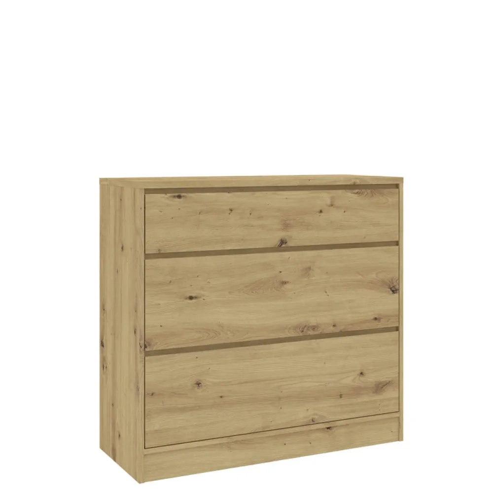 - Komoda BALVIO 98 cm w kolorze dąb artisan to kompaktowy mebel do salonu – idealny do przechowywania i aranżacji mniejszych przestrzeni. Matowe wykończenie, trwałe obrzeża PCV i minimalistyczna forma tworzą harmonijne połączenie stylu i funkcjonalności.