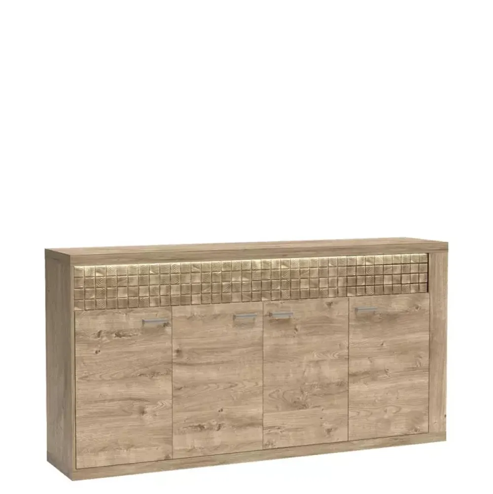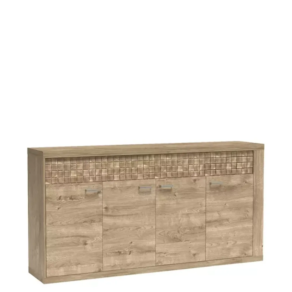 - Korpus oraz front komody wykonano z solidnej płyty laminowanej.