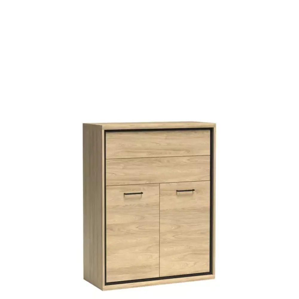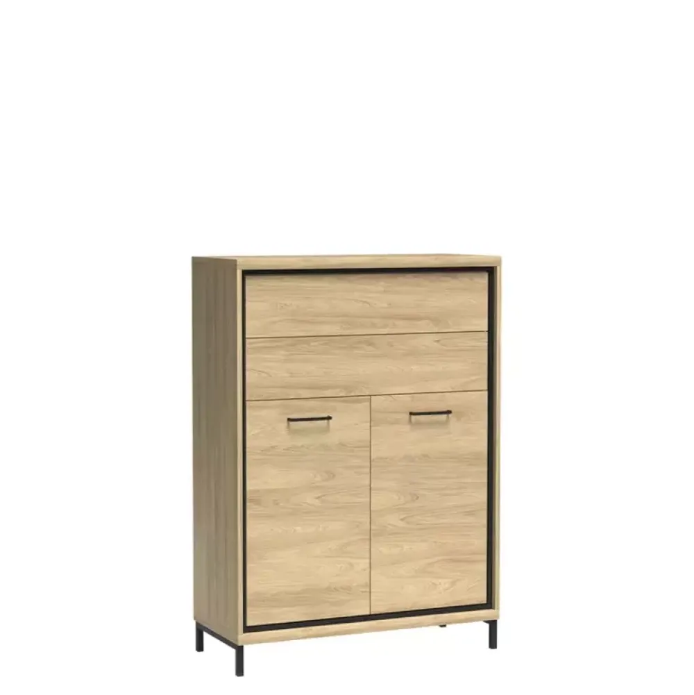 Komoda MORNE jest bardzo pojemną propozycją. Została wyposażona we dwie pojemne szuflady u góry oraz szafkę u dołu, za drzwiami której znajduje się półka. Komoda została wykonana w nowoczesnej stylistyce, dzięki której znajduje swoje miejsce we współczesnych aranżacjach pomieszczeń. Komoda posiada możliwość doposażenia w wysokie nóżki inspirujące do stylu loftowego, które zwiększają wysokość komody o 10 cm.