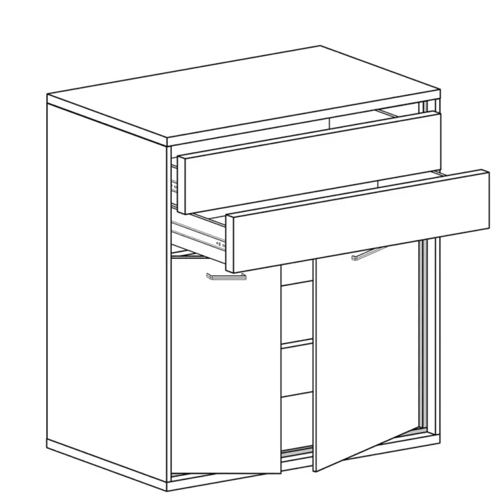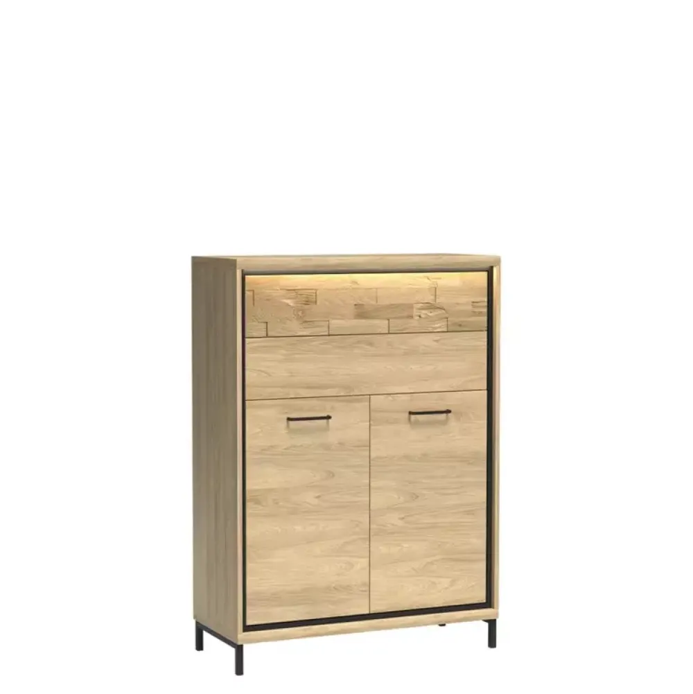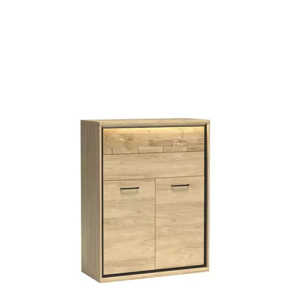 - Komoda MORNE została wyposażona we dwie szuflady oraz szafkę u dołu, w której znajduje się półka. Dodatkowo komoda posiada drzwi z cichym domykiem oraz możliwość wyposażenia w wysokie nóżki czy opcjonalne oświetlenie LED.