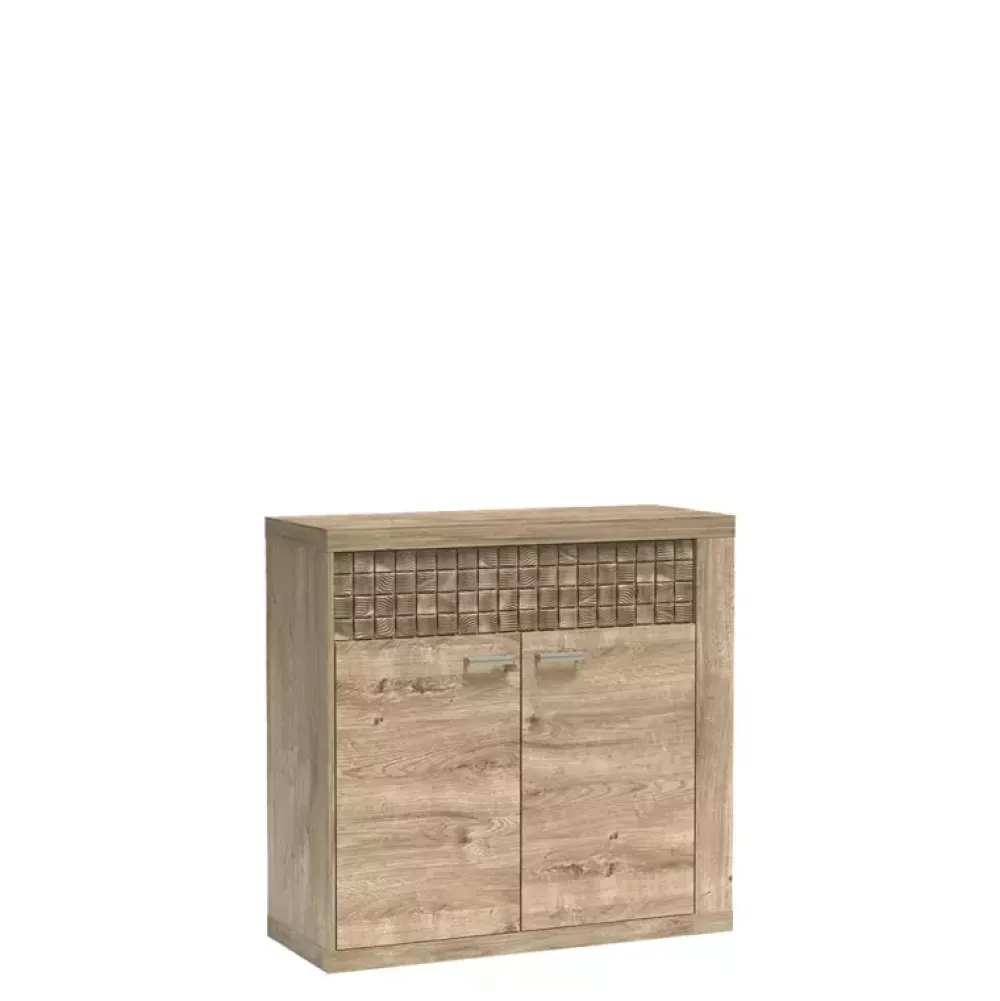 - Korpus oraz front komody wykonano z solidnej płyty laminowanej.