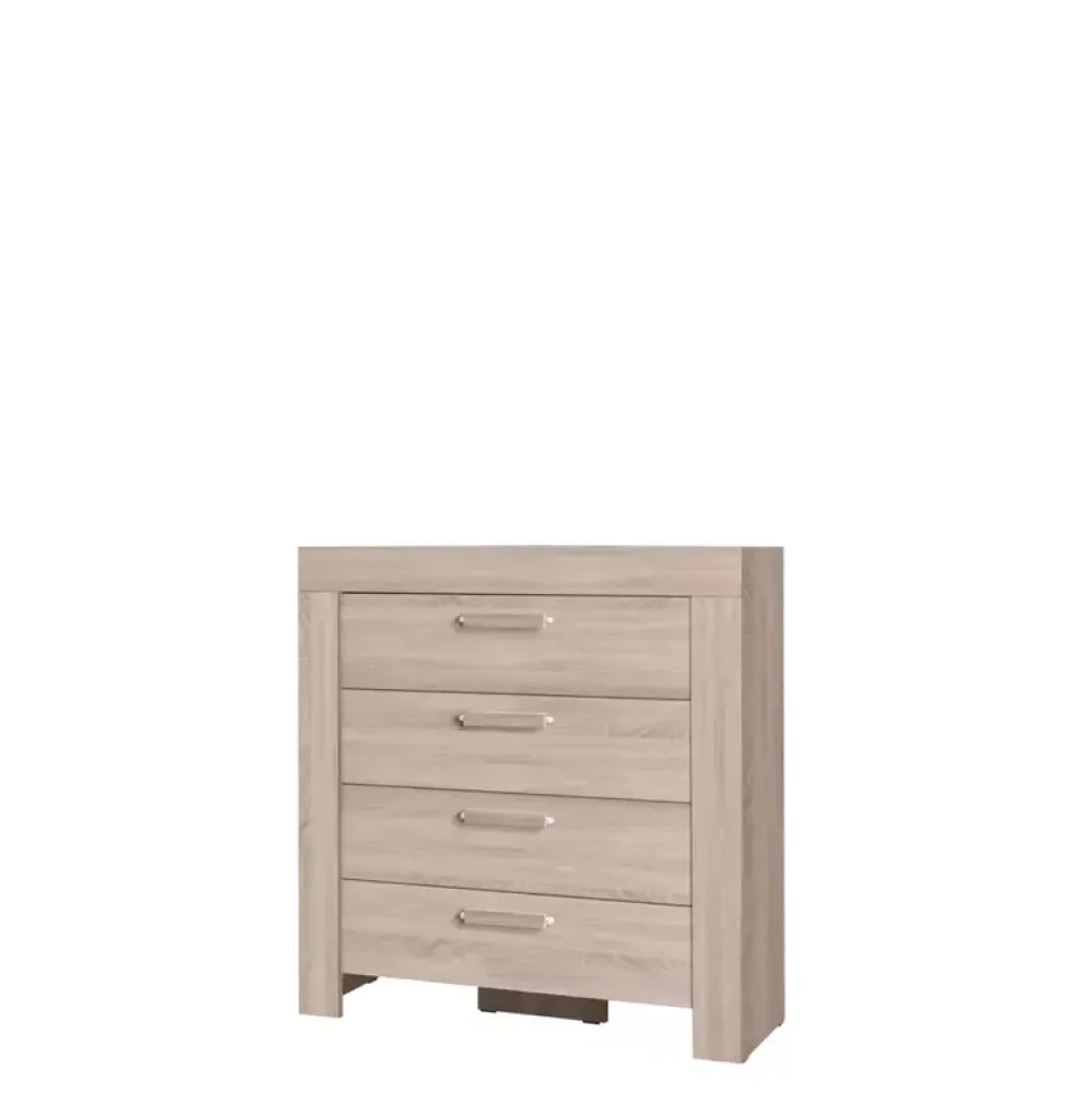 Komoda wyposażona w cztery szuflady na prowadnicach rolkowych. Komoda o szerokości 100 cm.
