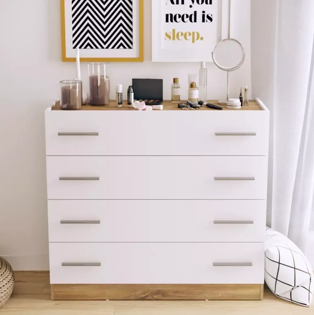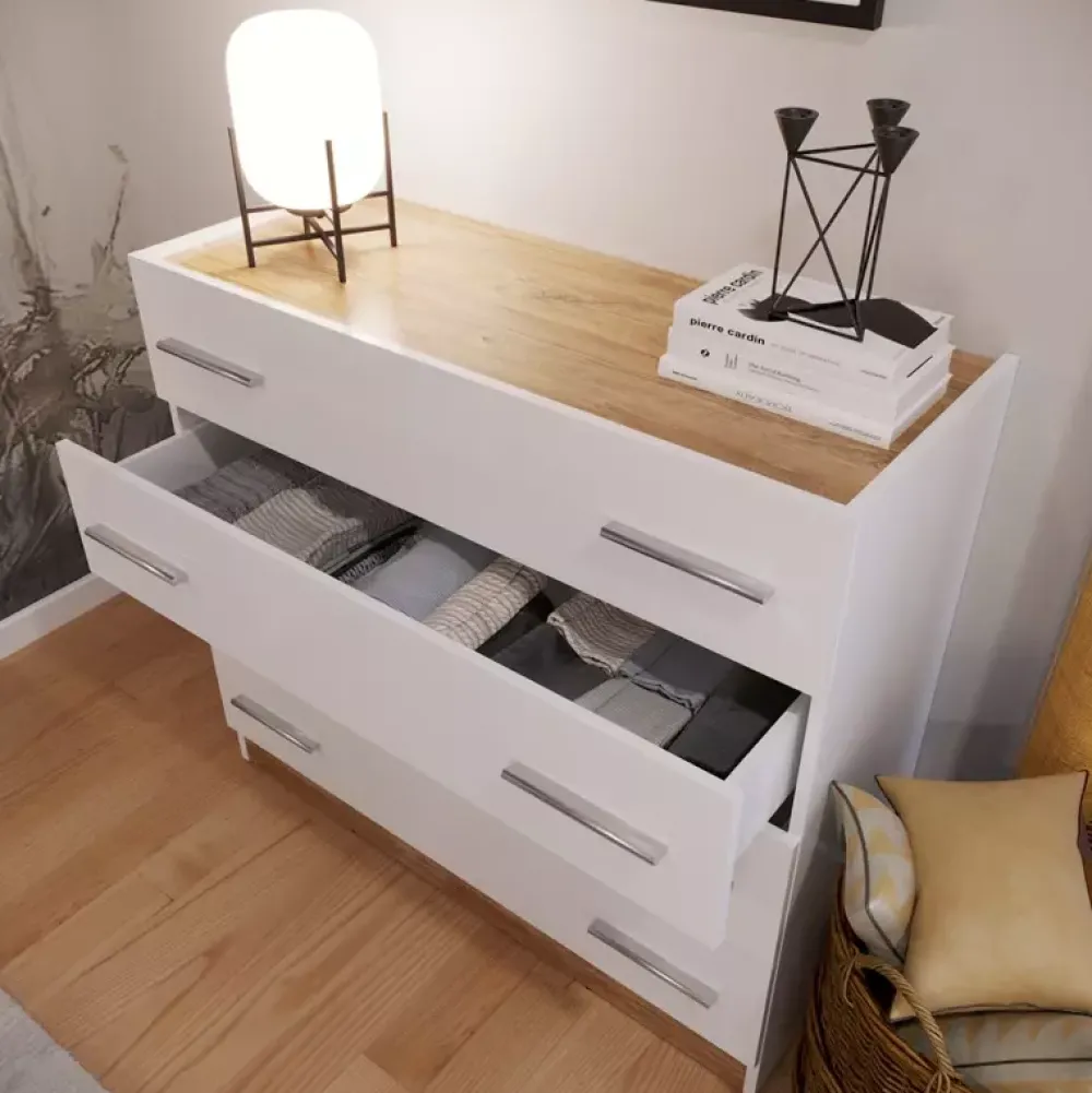 Ta pojemna komoda z szufladami to nie tylko praktyczny, ale również stylowy element wyposażenia sypialni, który doda uroku i nowoczesnego charakteru w twojej sypialni.