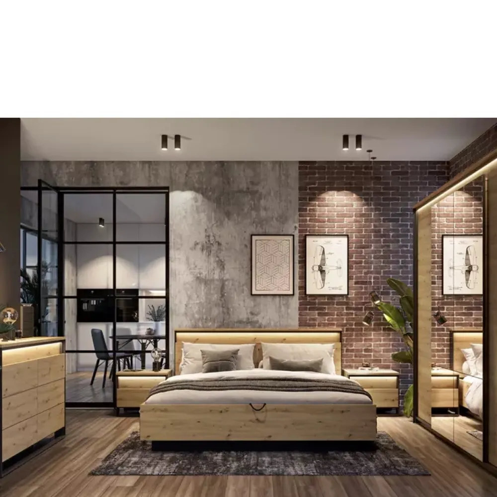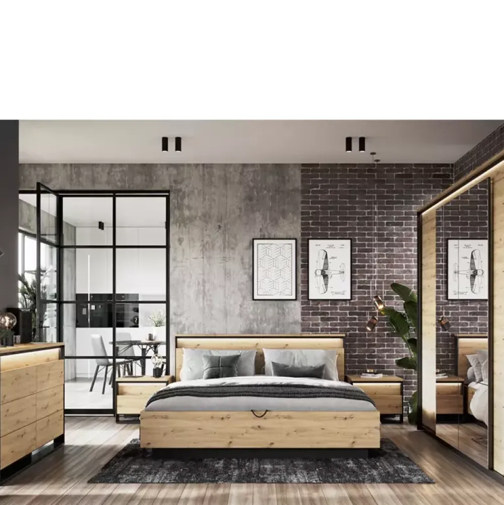 Komoda z szufladami QUANT jest propozycją wykonaną w loftowej stylistyce w połączeniu doskonale ze sobą kontrastujących kolorów czerni oraz dąb artisan z nowoczesnymi akcentami w formie podświetlenia LED znajdującego się w standardzie.