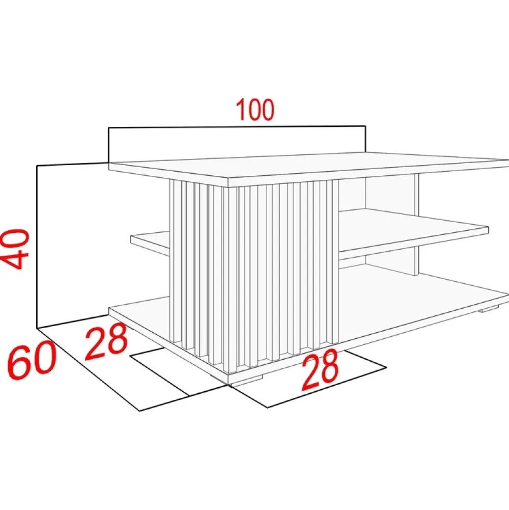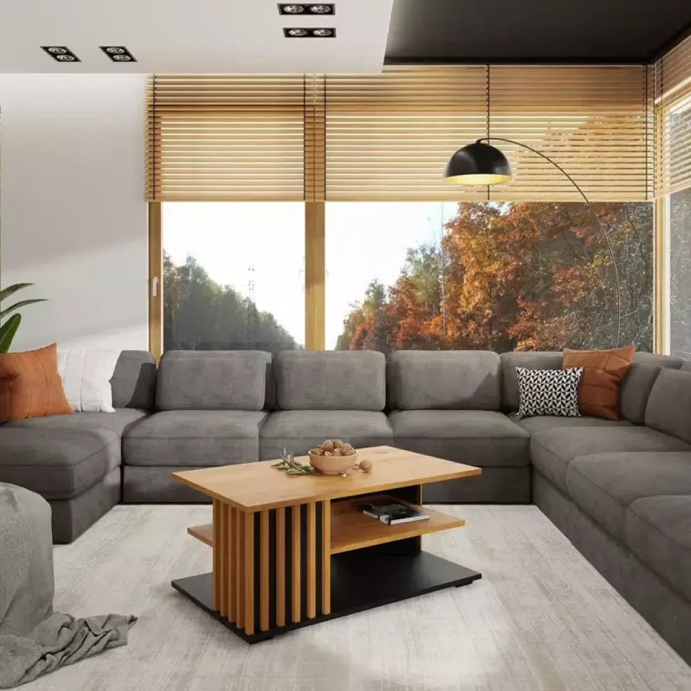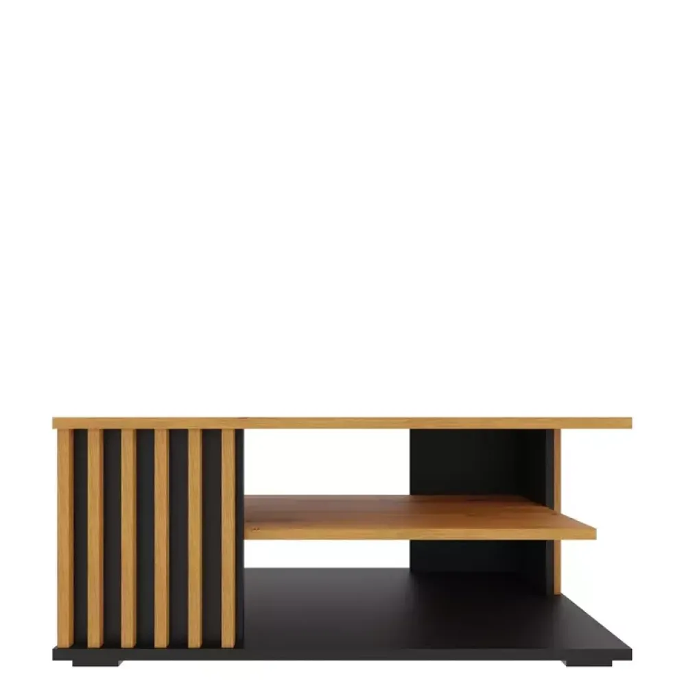Stolik kawowy NELGARI to propozycja, która dzięki swojej ponadczasowej oraz nietuzinkowej stylistyce doskonale sprawdza się we współczesnych i loftowych aranżacjach salonów. Stolik posiada blat o powierzchni 100 × 60 cm, który gwarantuje miejsce na odłożenie gorącej herbaty lub ulubionych wypieków podczas wolnych popołudni i wieczorów. Dodatkowo stolik posiada lamele łączące blat oraz podstawę, które w niepowtarzalny sposób zdobią konstrukcję.