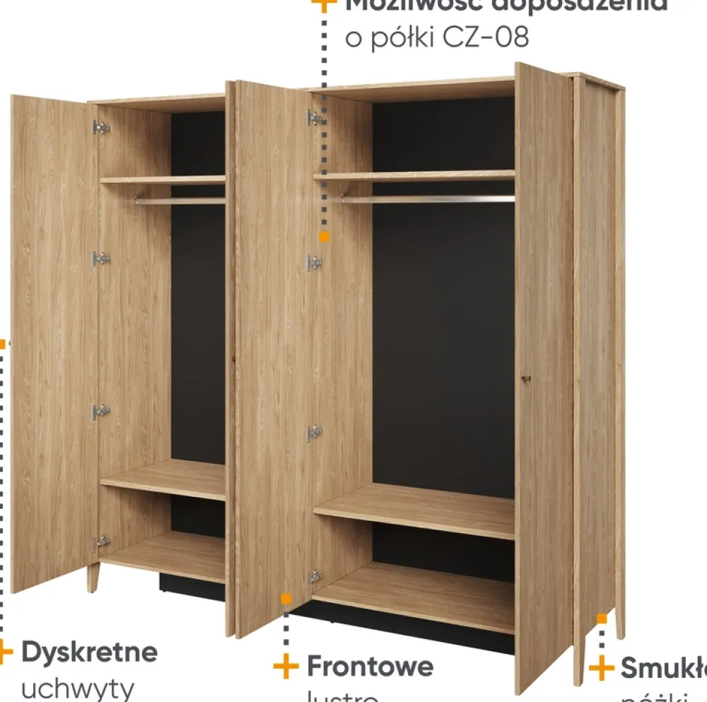 Zestawy Mebli Do Sypialni>lenart. Duża czterodrzwiowa szafa z lustrem 220 cm do sypialni COZY