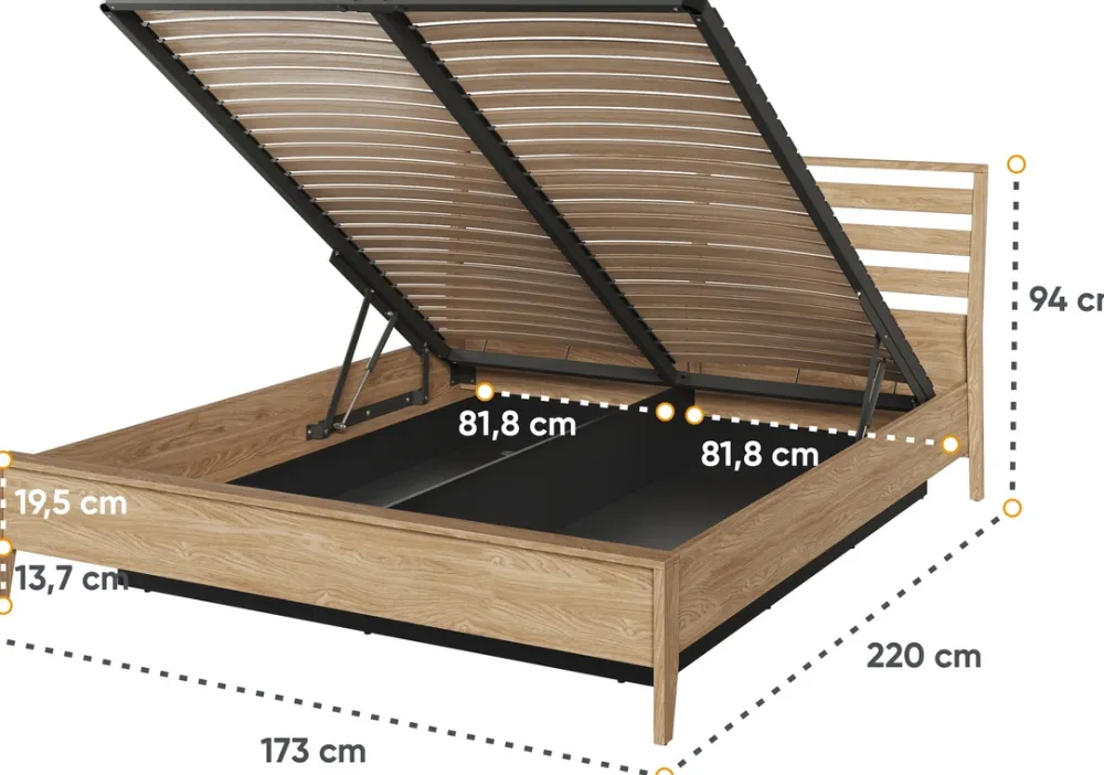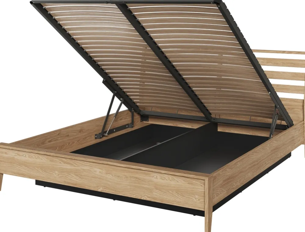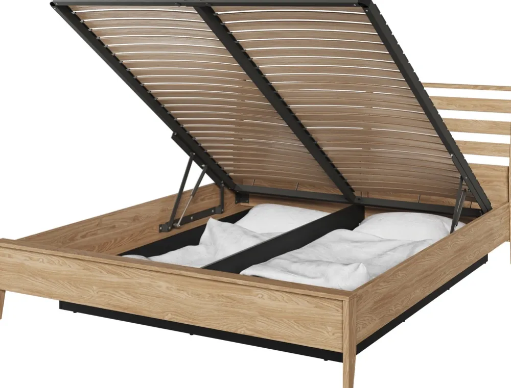 To nie tylko komfortowe miejsce do snu, ale także praktyczne rozwiązanie do przechowywania pościeli i innych akcesoriów. Podnośniki gazowe ułatwiają dostęp do pojemnika, który jest idealnym miejscem na dodatkową pościel lub sezonowe ubrania. Prosta, ale stylowa konstrukcja łóżka doskonale komponuje się z każdym wnętrzem.
