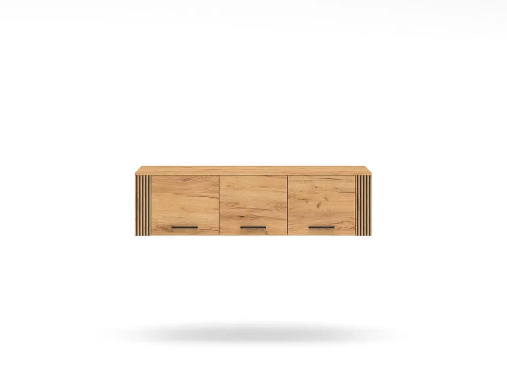 - Praktyczna nadstawka UMIO o szerokości 150 cm w kolorze dąb craft złoty z czarnymi detalami. 3 uchylne fronty z cichym domykiem, odporna płyta laminowana, trwałe obrzeża ABS. Idealne do sypialni jako uzupełnienie szafy z kolekcji UMIO.