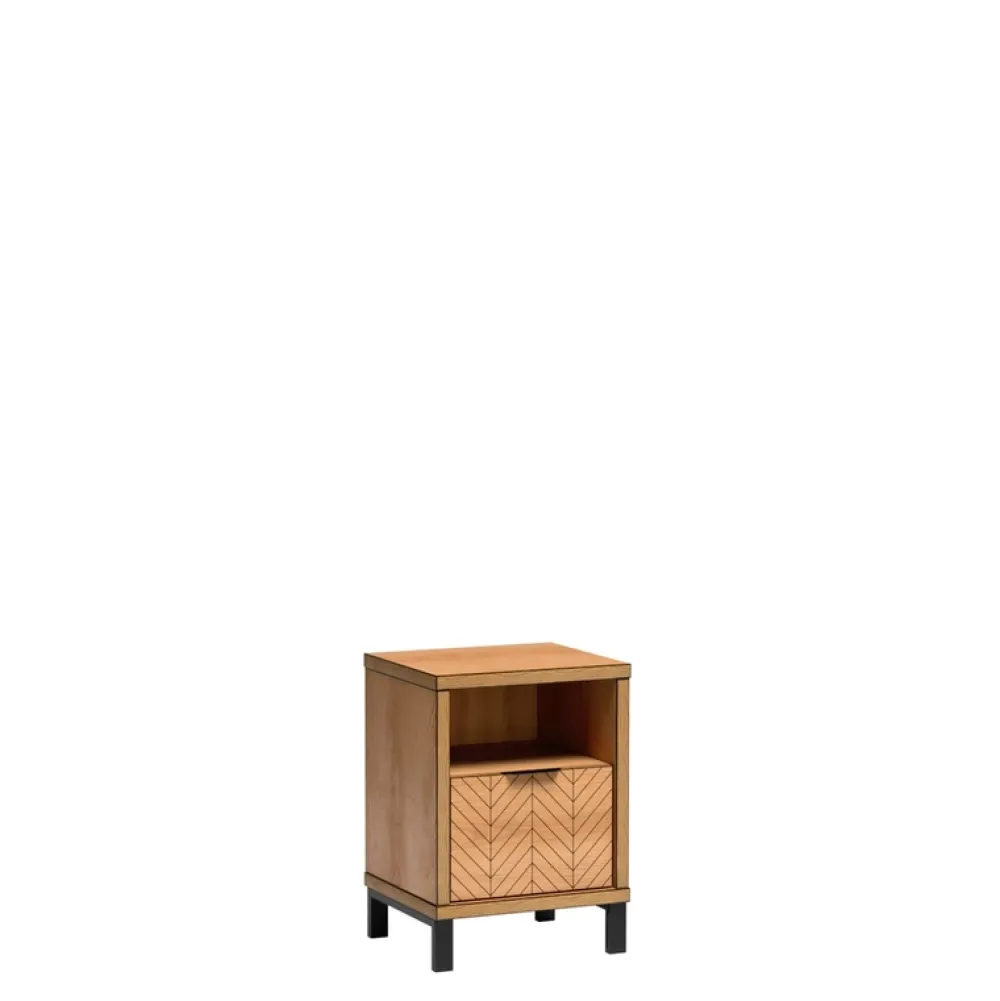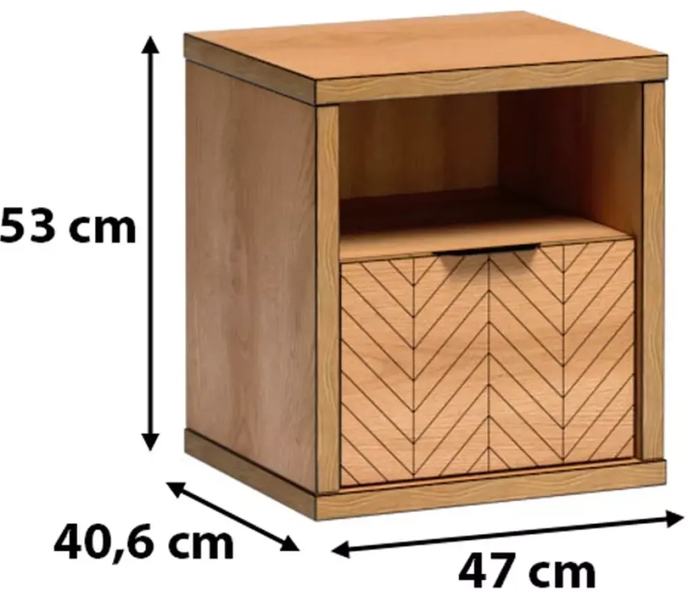- Odkryj urok naszej szafki nocnej FONETTI w dębowym kolorze karmel. Funkcjonalna z jedną szufladą i otwartą półką na drobiazgi. Frezowany wzór czarnej jodełki na froncie dodaje jej niepowtarzalnego stylu. Perfekcyjny dodatek do Twojej sypialni.