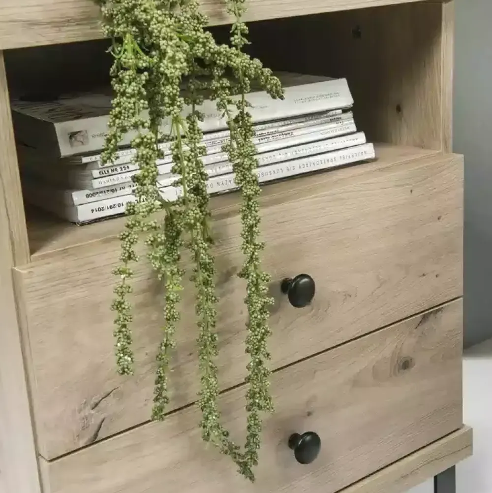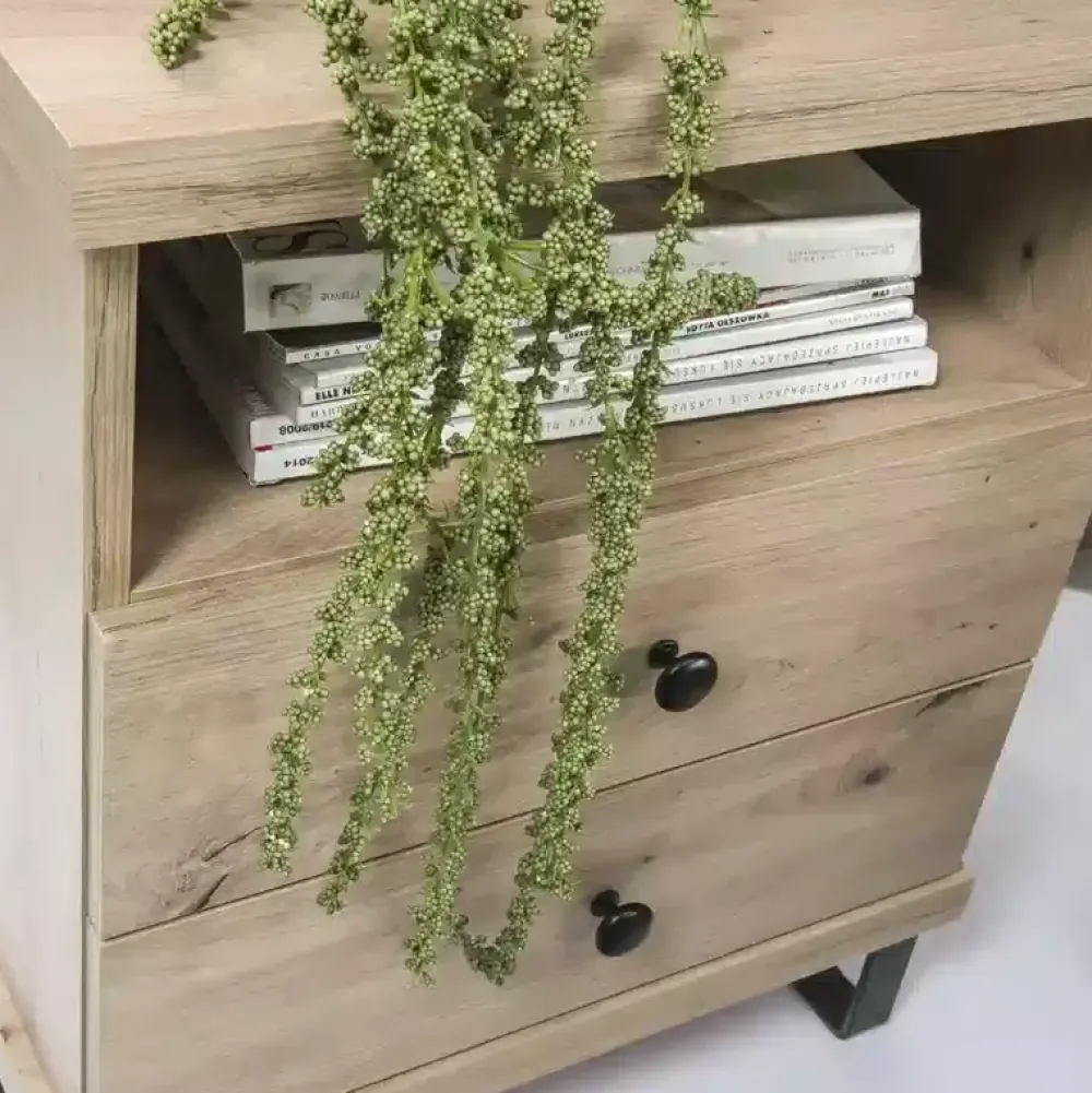 Szafka nocna CALIS została wyposażona we dwie szuflady, w których możesz umieścić swoje niezbędne akcesoria sypialniane. Dodatkowo blat szafki doskonale sprawdzi się do umiejscowienia lampki nocnej oraz wieczornego ładowania telefonu.