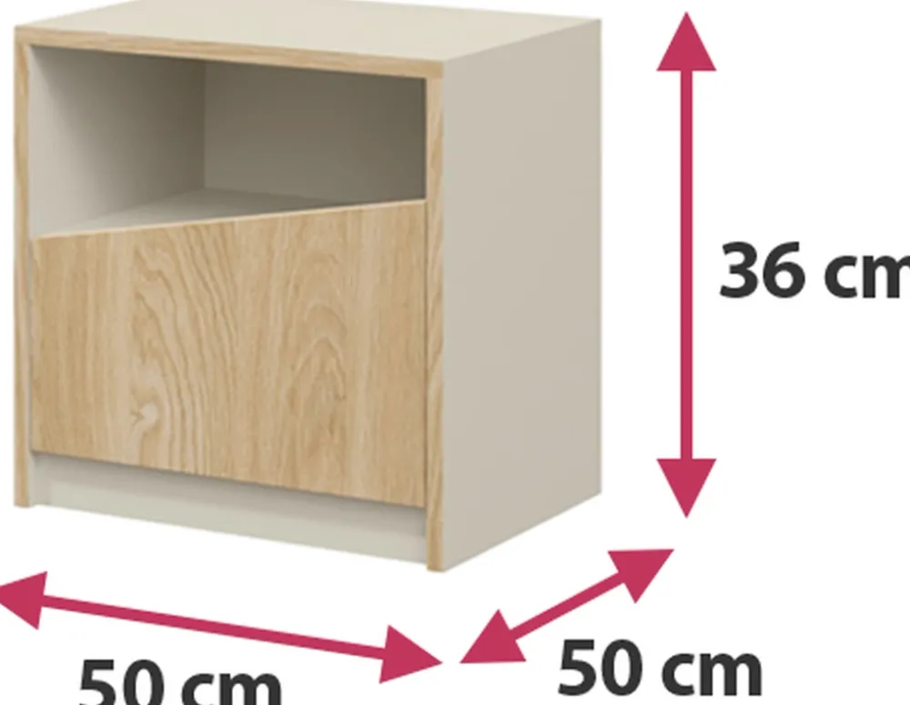 Nasza szafka nocna to idealne rozwiązanie dla osób, które cenią sobie elegancję połączoną z funkcjonalnością. Wysokiej jakości materiały, praktyczna otwarta półka, dyskretna przestrzeń za drzwiami oraz wytrzymałe obrzeża tworzą szafkę, która nie tylko pięknie wygląda, ale także doskonale sprawdza się w codziennym użytkowaniu. Wprowadź do swojej sypialni harmonię i styl z naszą szafką nocną AMADEO!