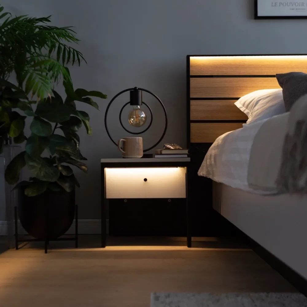 Zestawy Mebli Do Sypialni|Szafki Nocne>lenart. Szafka nocna z szufladą i podświetleniem do sypialni GRIS szary