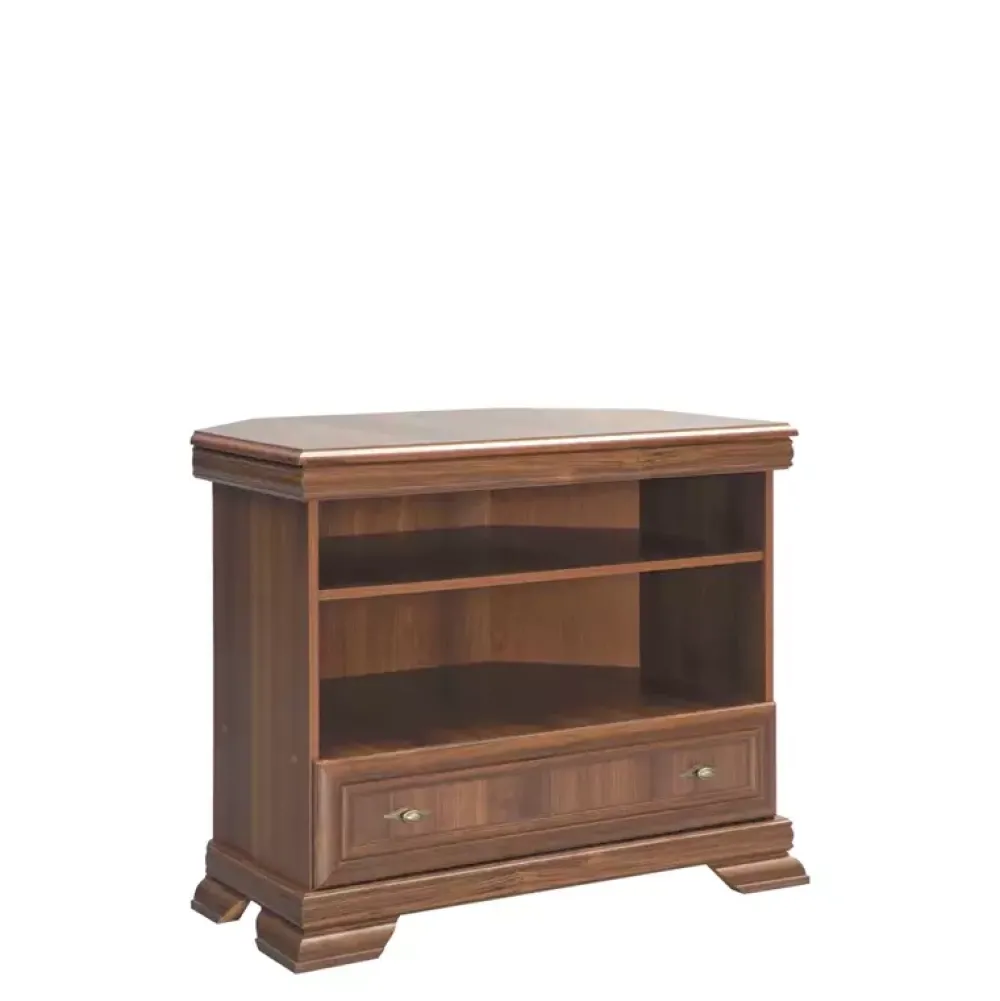 - Szafka RTV KOLONIA to propozycja, która doskonale sprawdzi się na zagospodarowanie rogu w twoim pomieszczeniu. Szafka została wyposażona w szufladę znajdującą się u dołu, nad którą swoje miejsce znalazły dwa poziomy na rozmaite dekory.