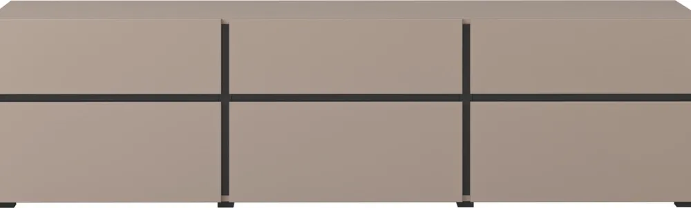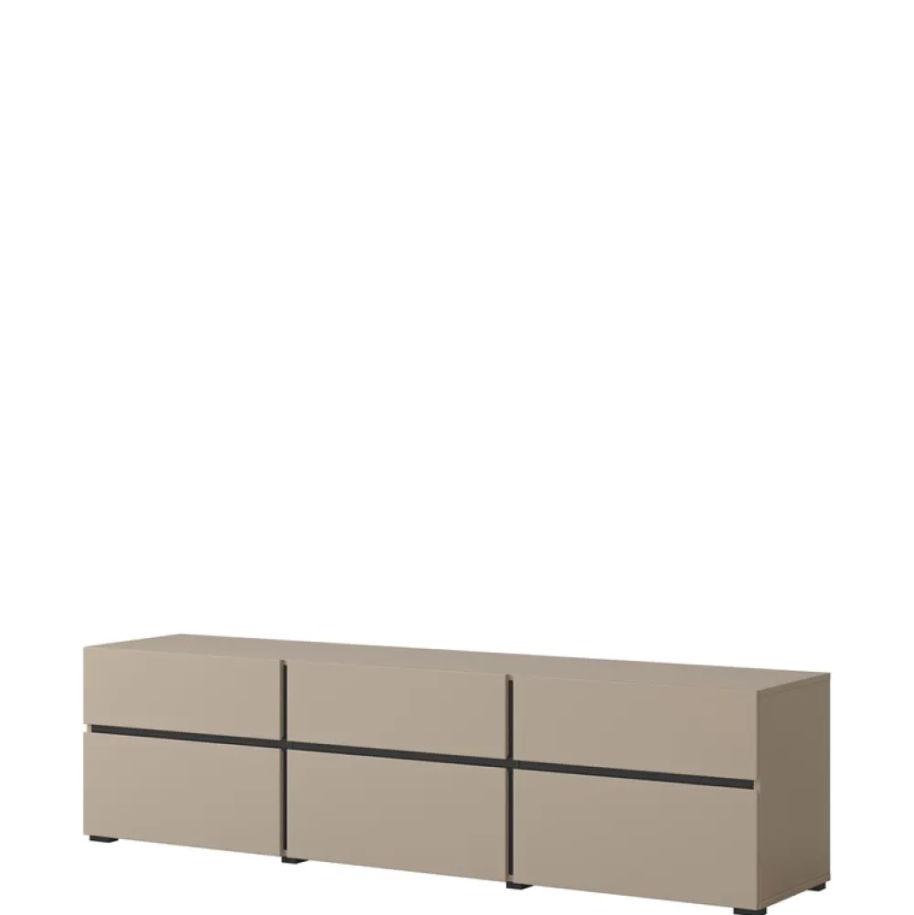 - Nowoczesna szafka RTV CROSS o szerokości 180 cm posiada trzy szuflady oraz troje drzwi. Zapewni to sporo miejsca na multimedialne akcesoria. Szafka RTV wykonana została w całości z płyty laminowanej, a jej obrzeża zabezpieczone są okleiną ABS.