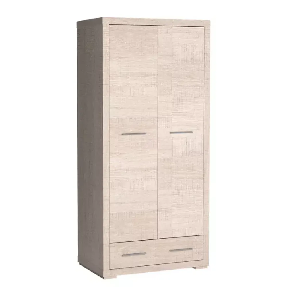 Szafa VIETA to pojemna propozycja która pozwoli ci przechować garderobę. Szafa posiada szufladę u dołu, nad którą znajduje się para drzwi a za nimi duża przestrzeń z drążkiem na wieszaki oraz półka nad nim. Szafa jest dostępna w czterech kolorach, dzięki czemu dopasujesz mebel do aranżacji swojego pomieszczenia.