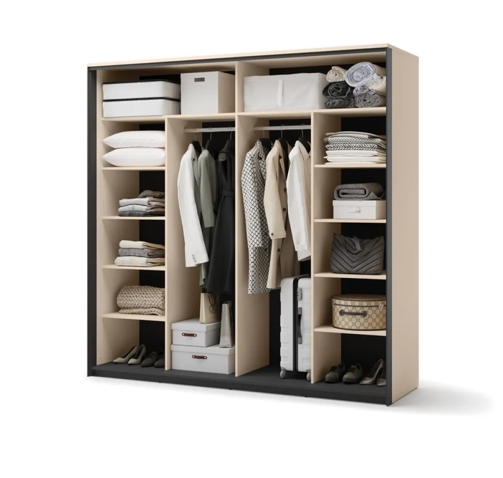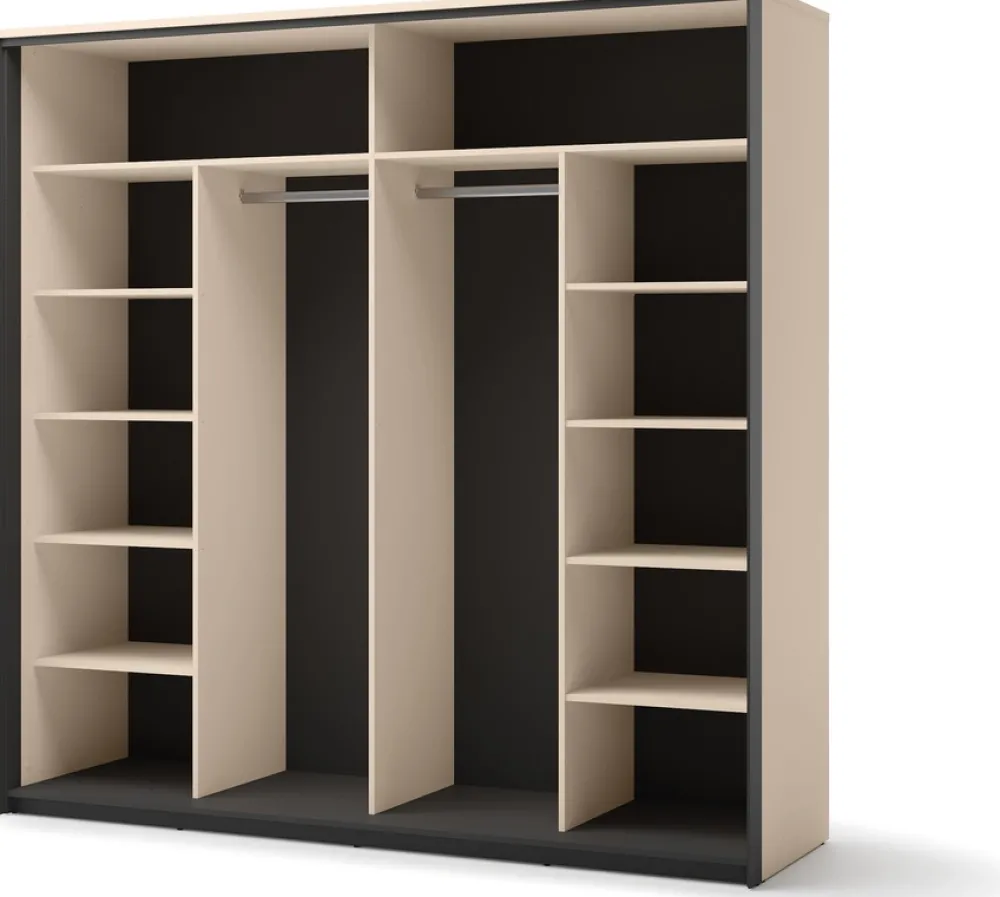- Kolor półek i frontów – beżowy, spójny z nowoczesną estetyką szafy