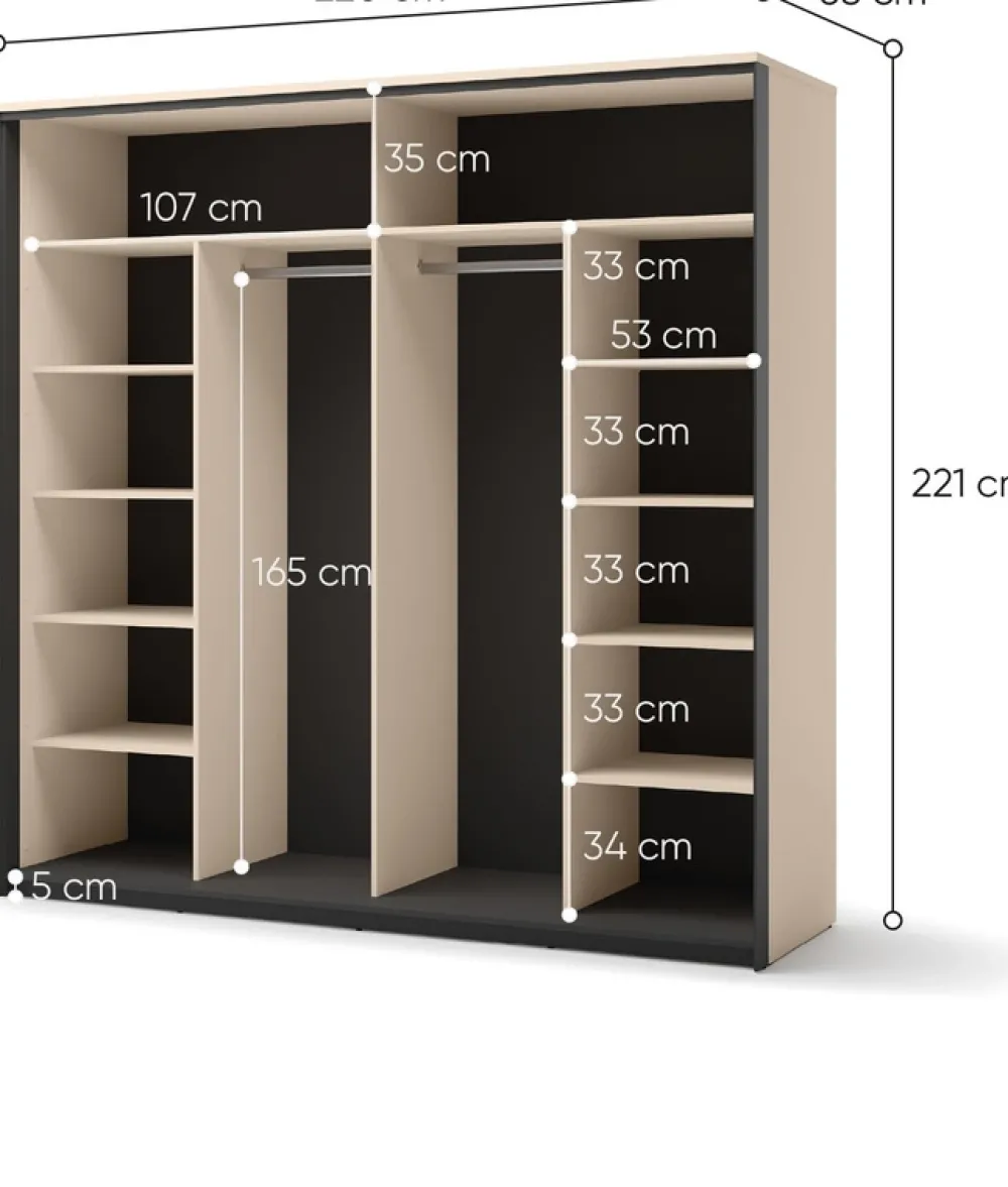 ✅ Szerokość 220 cm – idealna do przechowywania ubrań i dodatków bez kompromisów