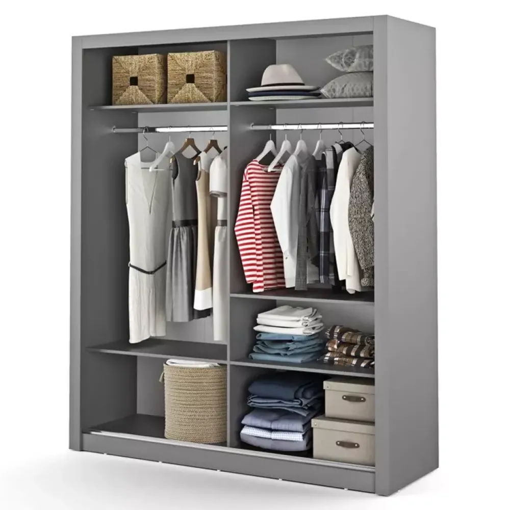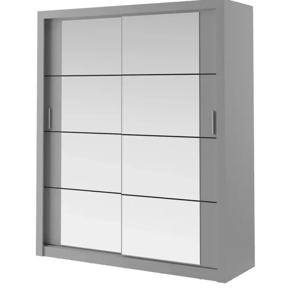 Dwudrzwiowa szafa przesuwna z lustrem ARTI została wyposażona w lustro o nowoczesnym kształcie, które optycznie powiększa, oraz rozjaśnia pomieszczenie w niepowtarzalny sposób. Szafa przesuwna do sypialni posiada również pięć praktycznych półek, które znakomicie sprawdzą się do zagospodarowania rozmaitymi elementami garderoby.